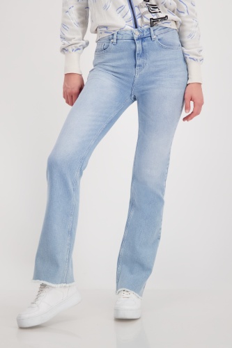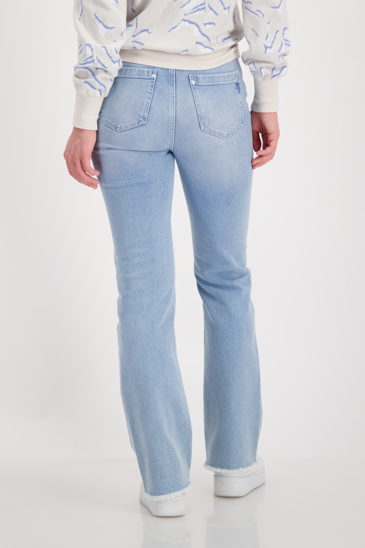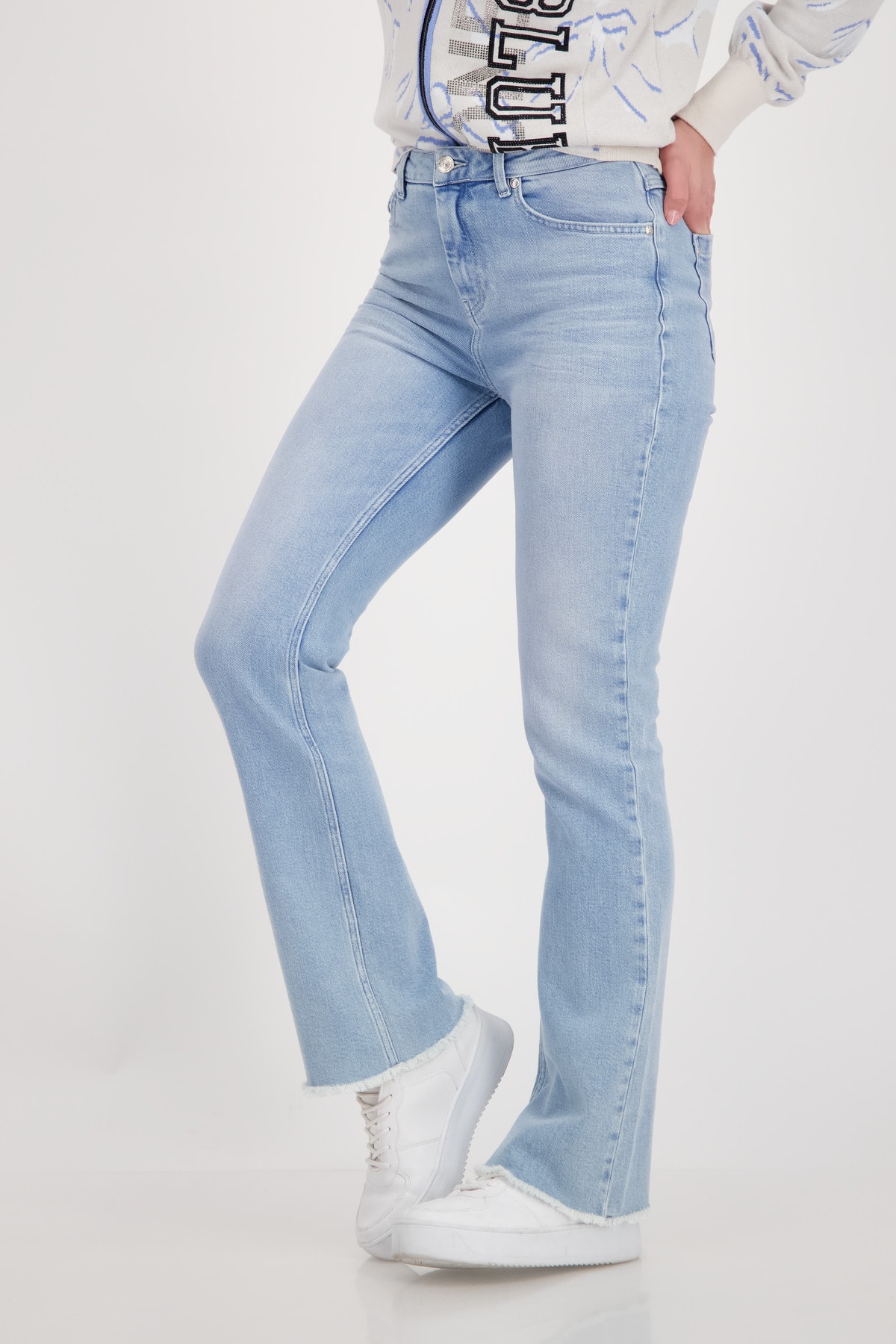 На сайте указаны российские размеры. Джинсы monari bootcut с бахромой на щиколотках. Широкие брюки со шлевками для ремня имеют пуговицу и потайную молнию. Женские джинсы с классическим 5-карманным фасоном, кокеткой сзади и нормальной посадкой обещают удобную посадку. Длина по внутреннему шву 82 см во всех размерах. Модель ростом 176 см