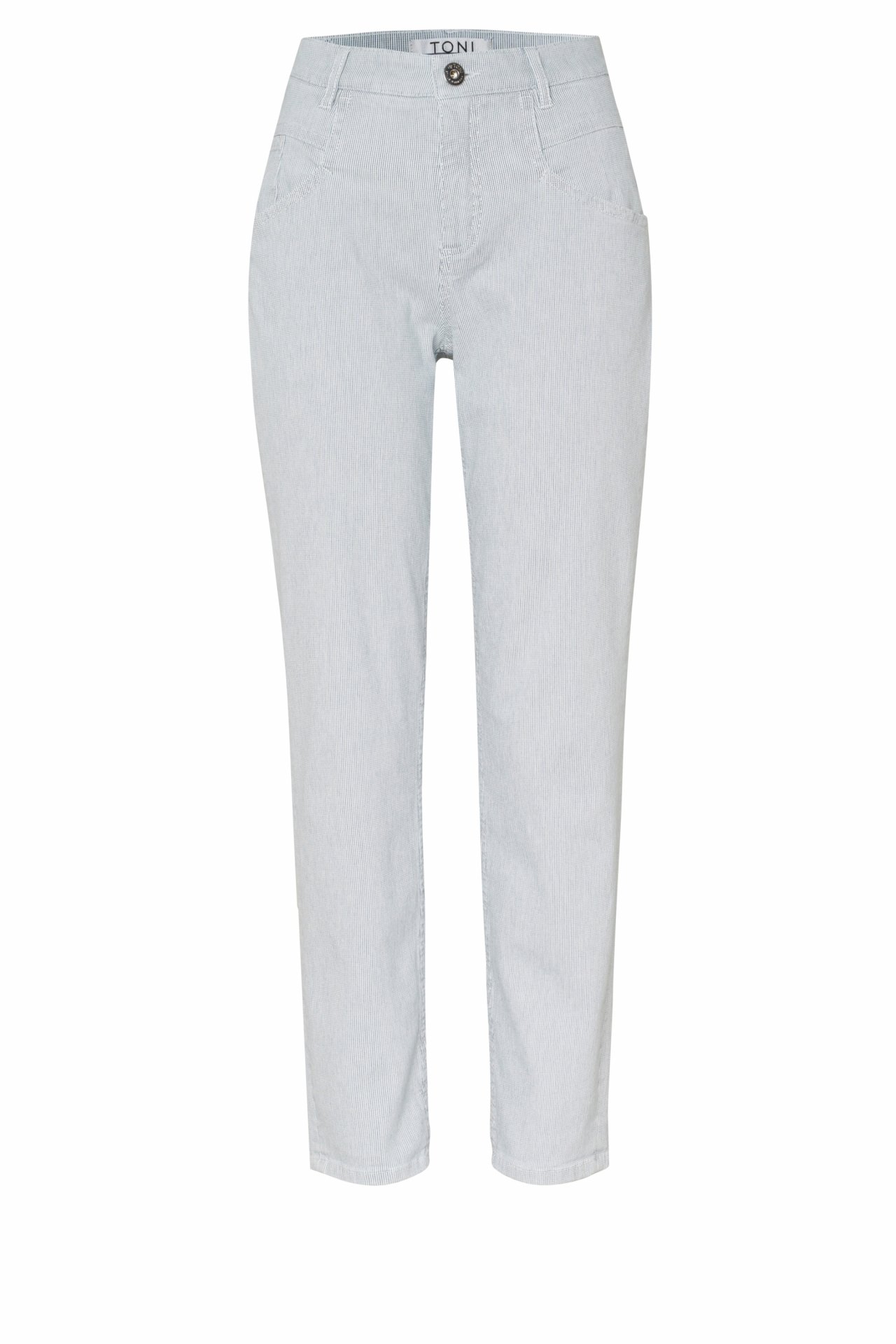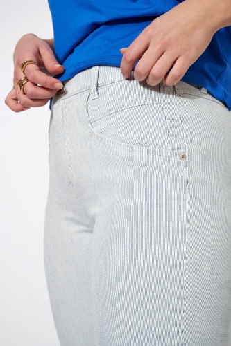 На сайте указаны российские размеры. Свободные джинсы средней посадки с тонкой полоской, средней талией и продуманным решением карманов. Длина по внутреннему шву: 74 см. Рост модели 178 см.