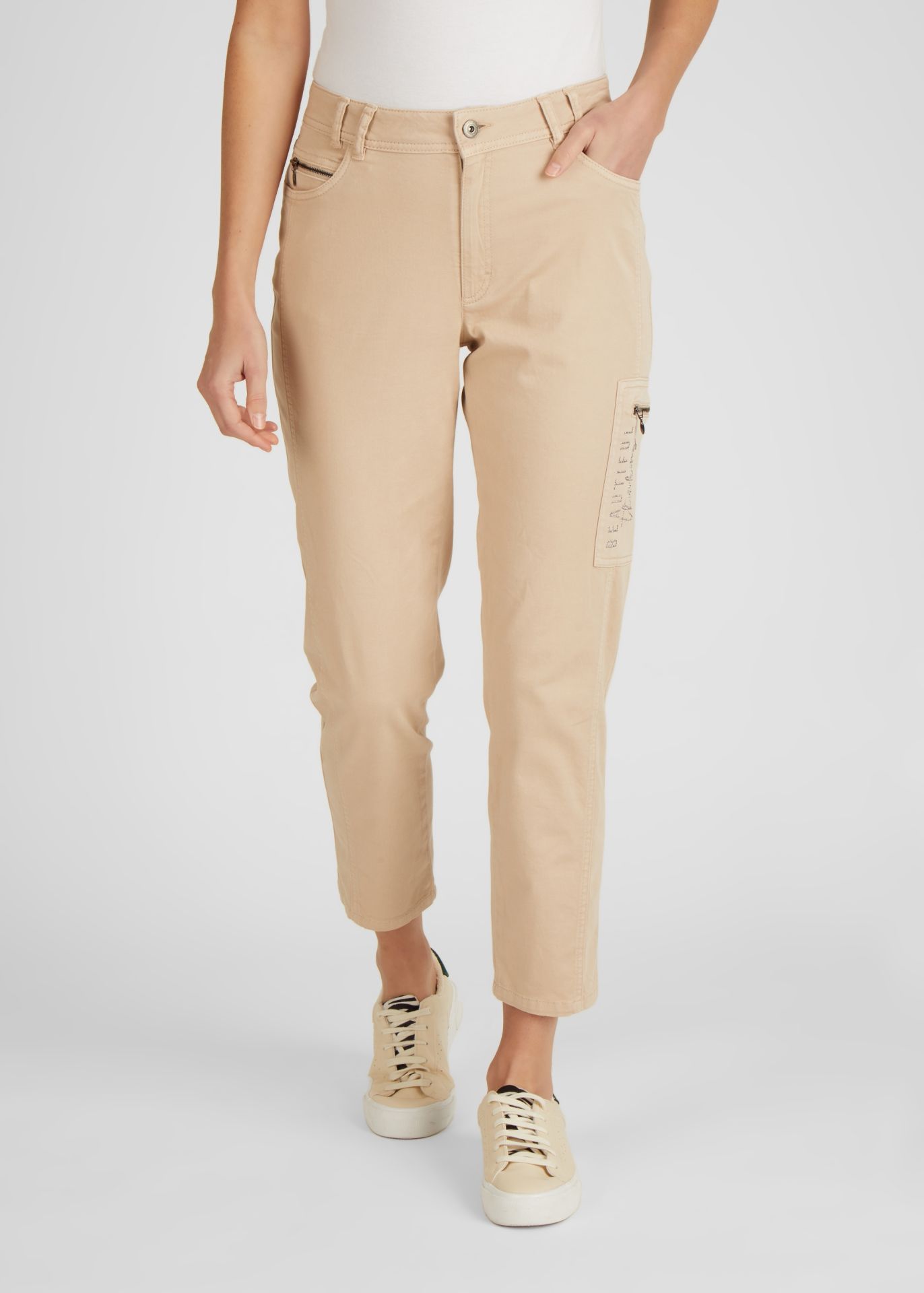 На сайте указаны российские размеры. Эти джинсы впечатляют своим современным повседневным стилем. Разделительные швы и надпись на кармане на молнии придают брюкам особый вид. Качество мягкого денима и прямой крой обеспечивают высокий уровень комфорта. Длина штанины по внутренней стороне для размера 46: 70 см. Рост модели 176 см.