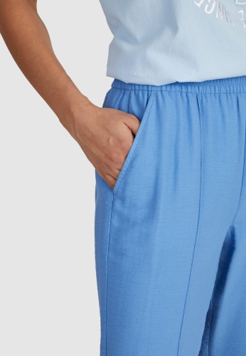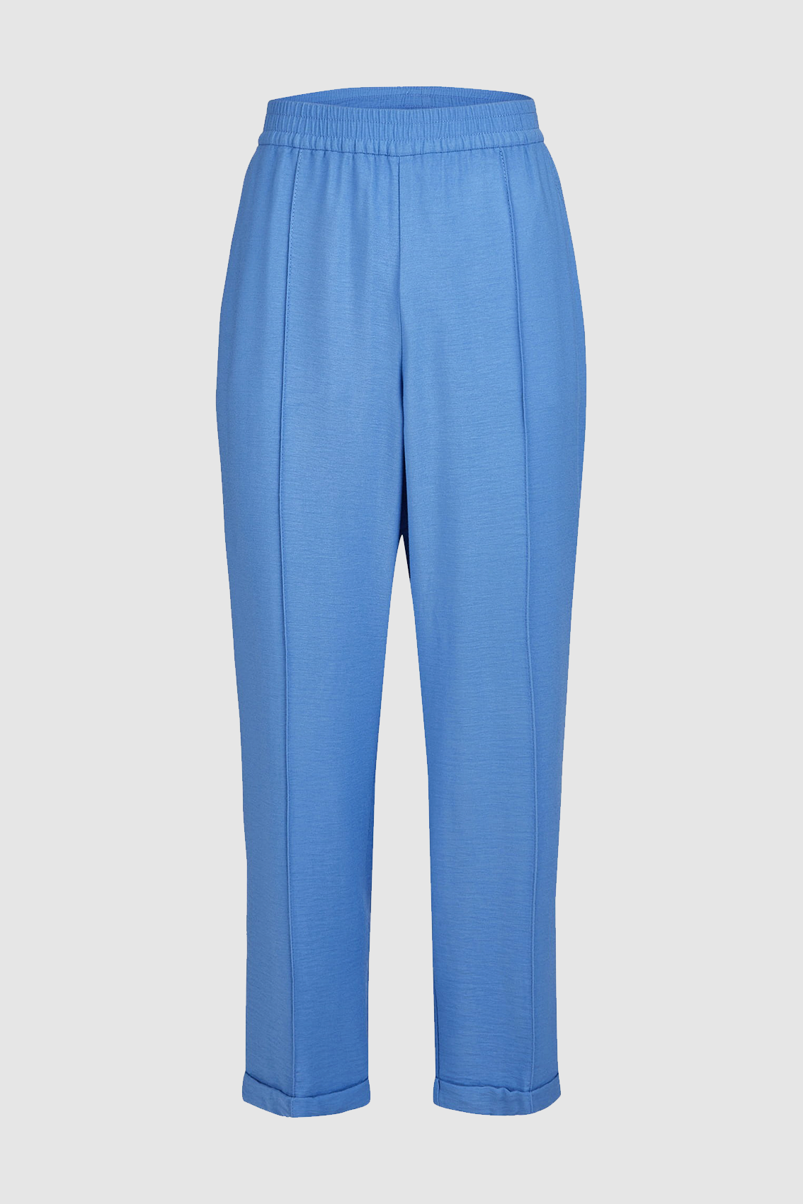 Брюки из структурированной вискозы имеют очень удобную посадку благодаря манжетам-джоггерам. Декоративные стеганые вытачки спереди делают образ неповторимым.