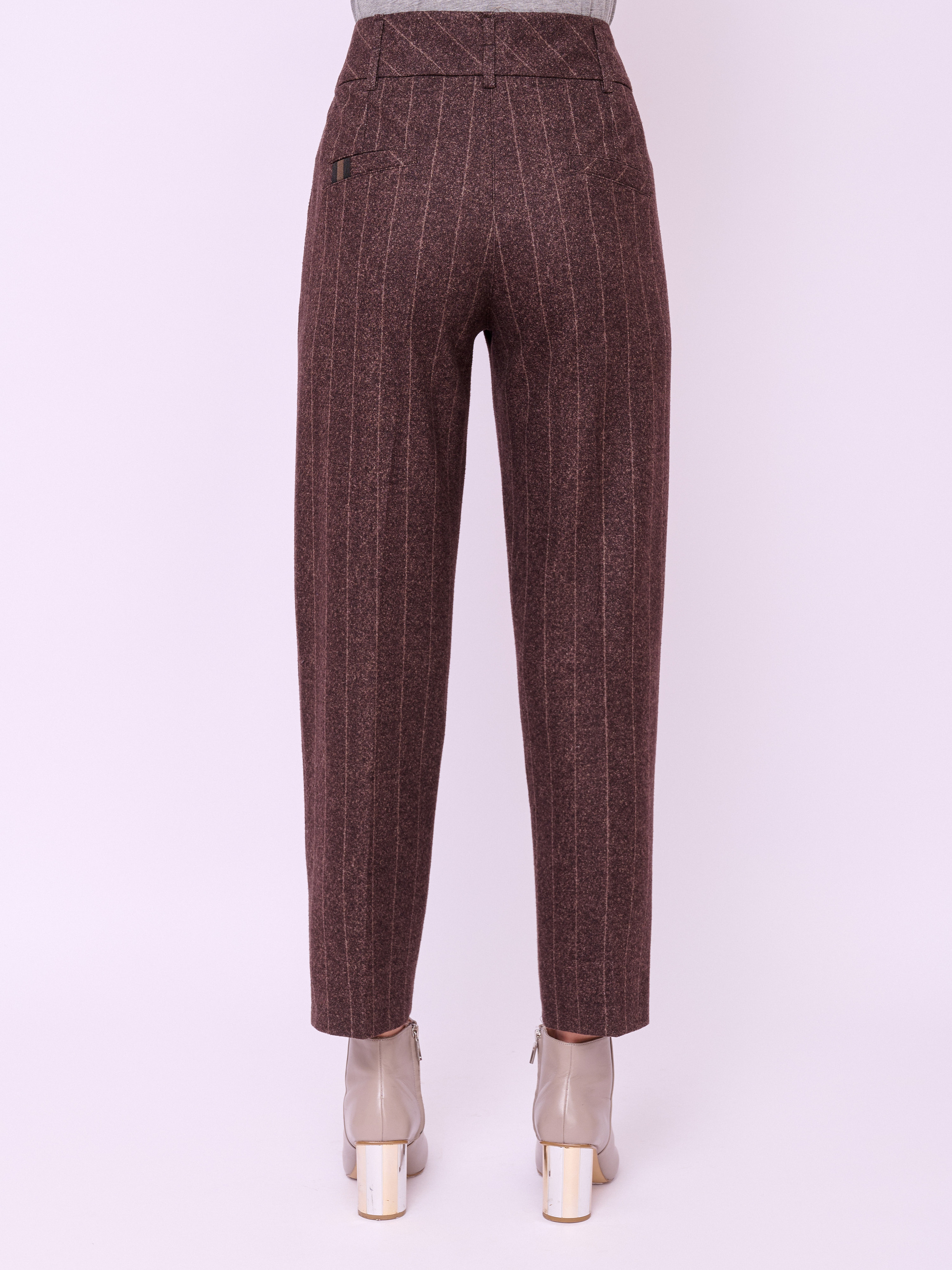 Зауженные брюки из мягкого сукна в полоску на молнии с косыми карманами и шлевками на поясе. Длина брючин: 74 см.
