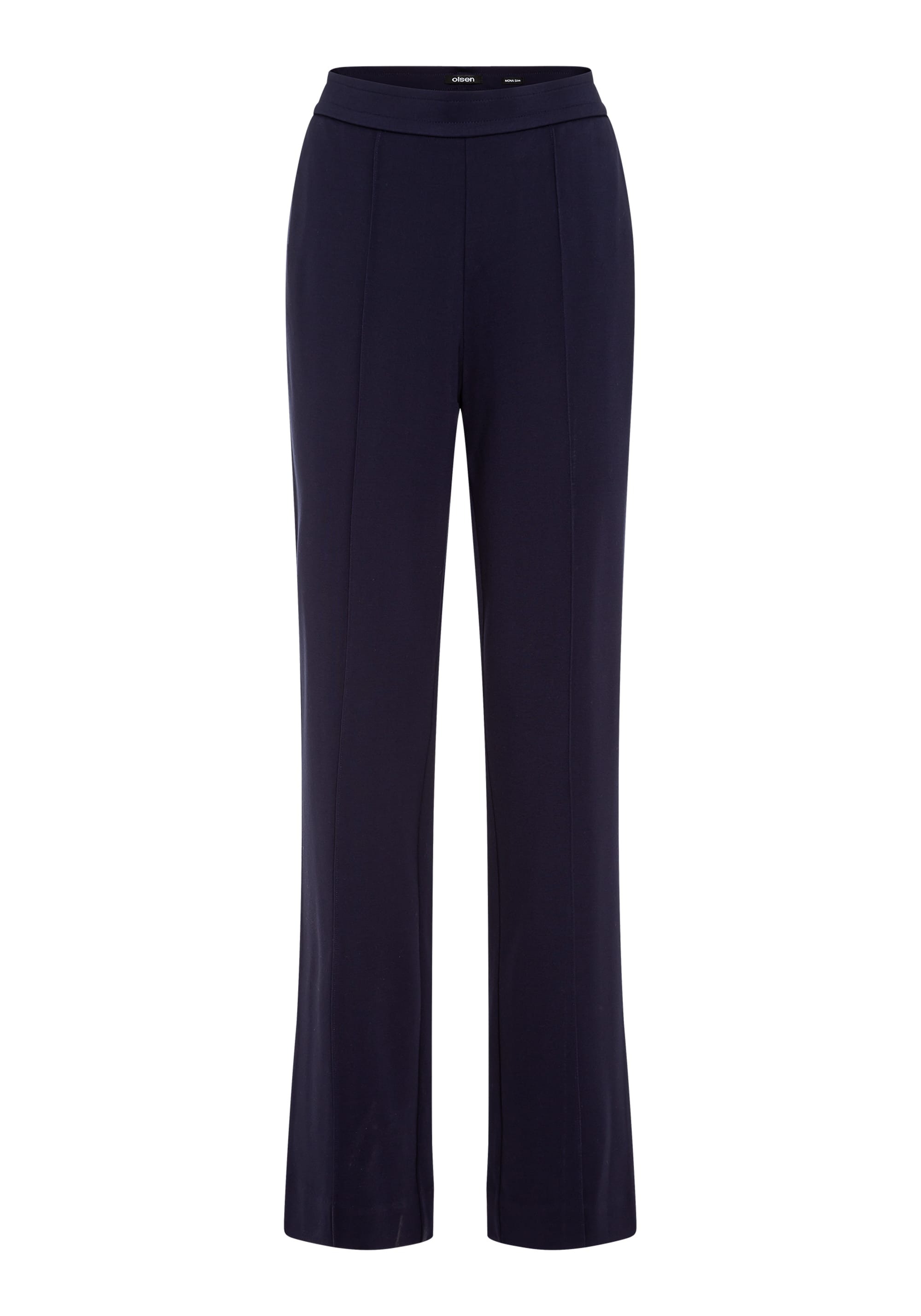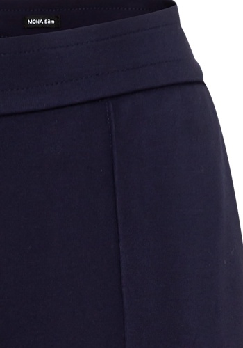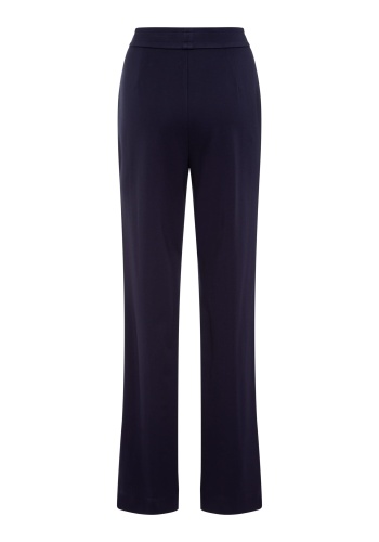 Брюки из мягкого трикотажа с легким блеском, с эластичным поясом, прорезными боковыми карманами и передними швами по центру штанин. Эти брюки очень эластичны! В модели Mona они обеспечивают расслабленное прилегание к бедрам и сидят точно на естественной линии талии, создавая эффект удлинения ног.