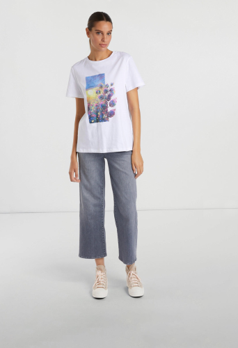 Джинсовые брюки-кюлоты с прямыми штанинами создают повседневный образ для отдыха. Комфортный органический хлопок с небольшим количеством эластана приятен в носке. Брюки имеют застежку-молнию и четыре кармана.