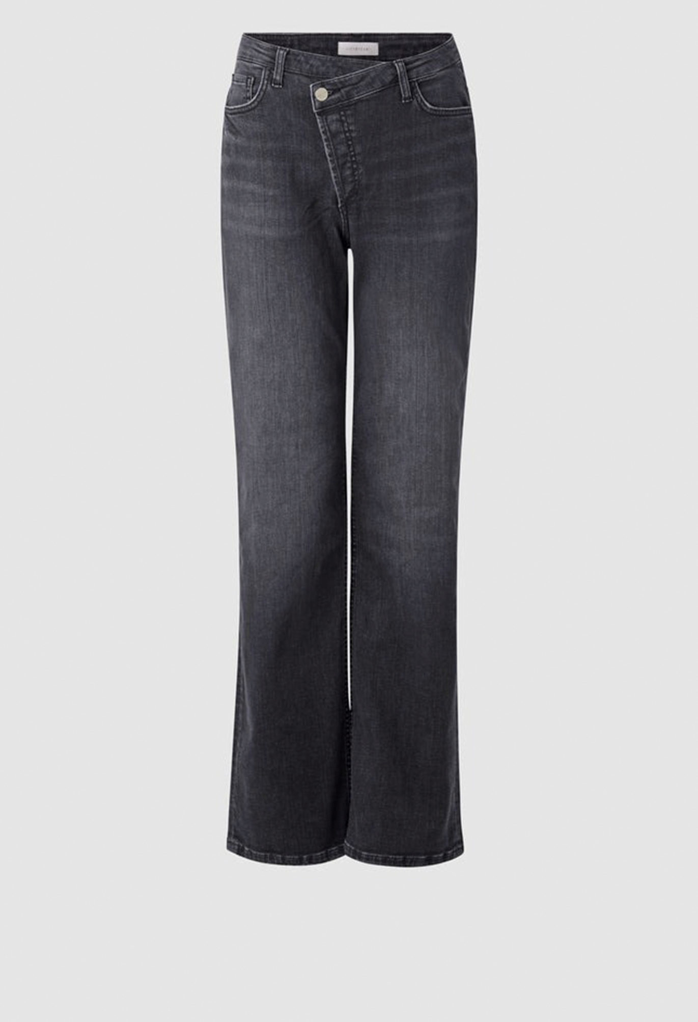 Джинсы оснащены диагональной молнией и V-образным поясом. Они также впечатляют сочетанием материалов с органическим хлопком. Широкая штанина удобна в ношении. Длина для размера 42: 82 см.