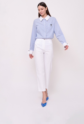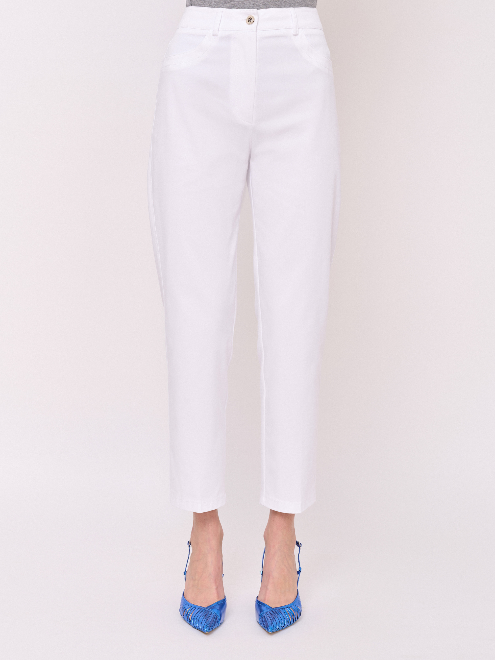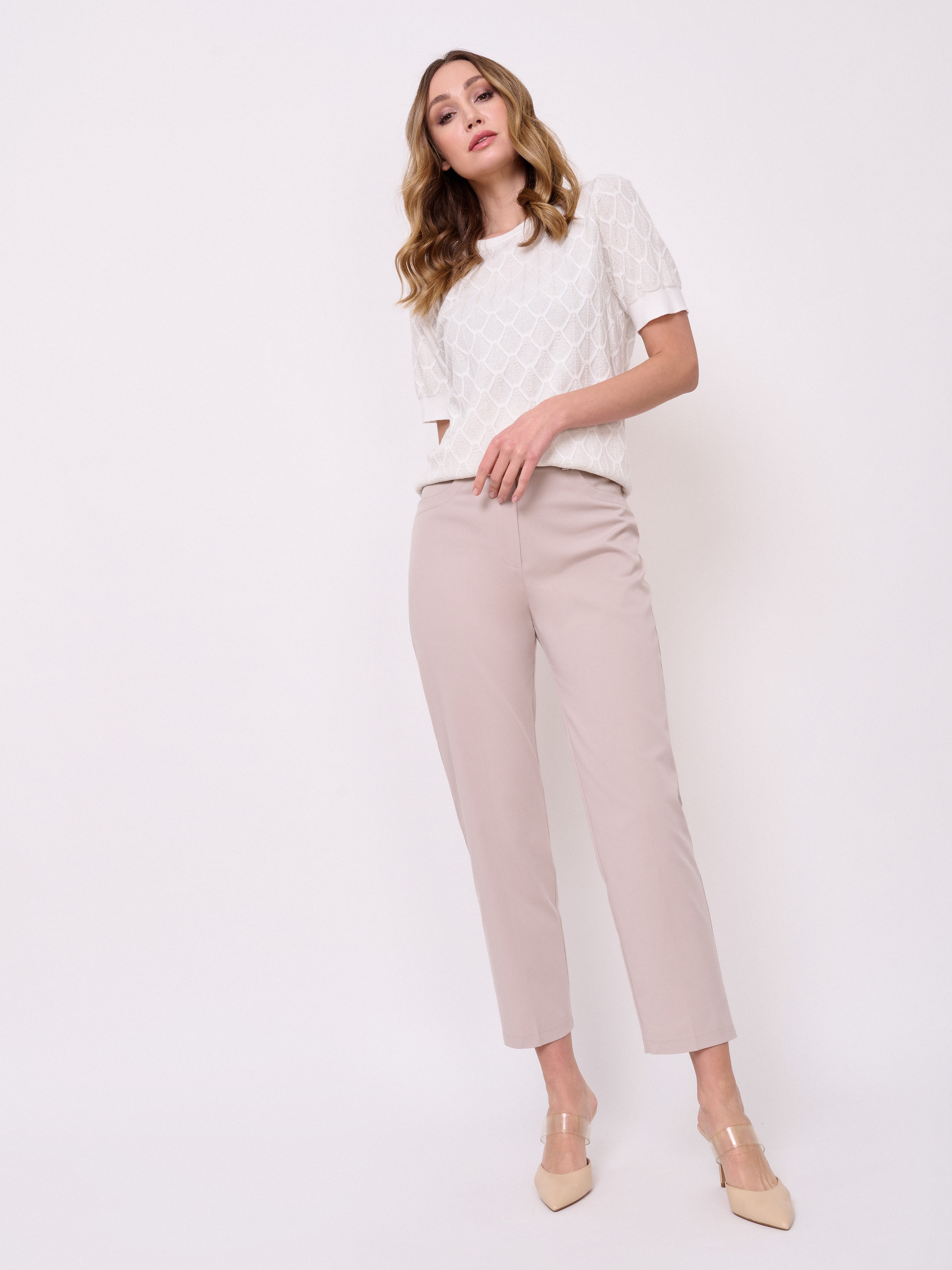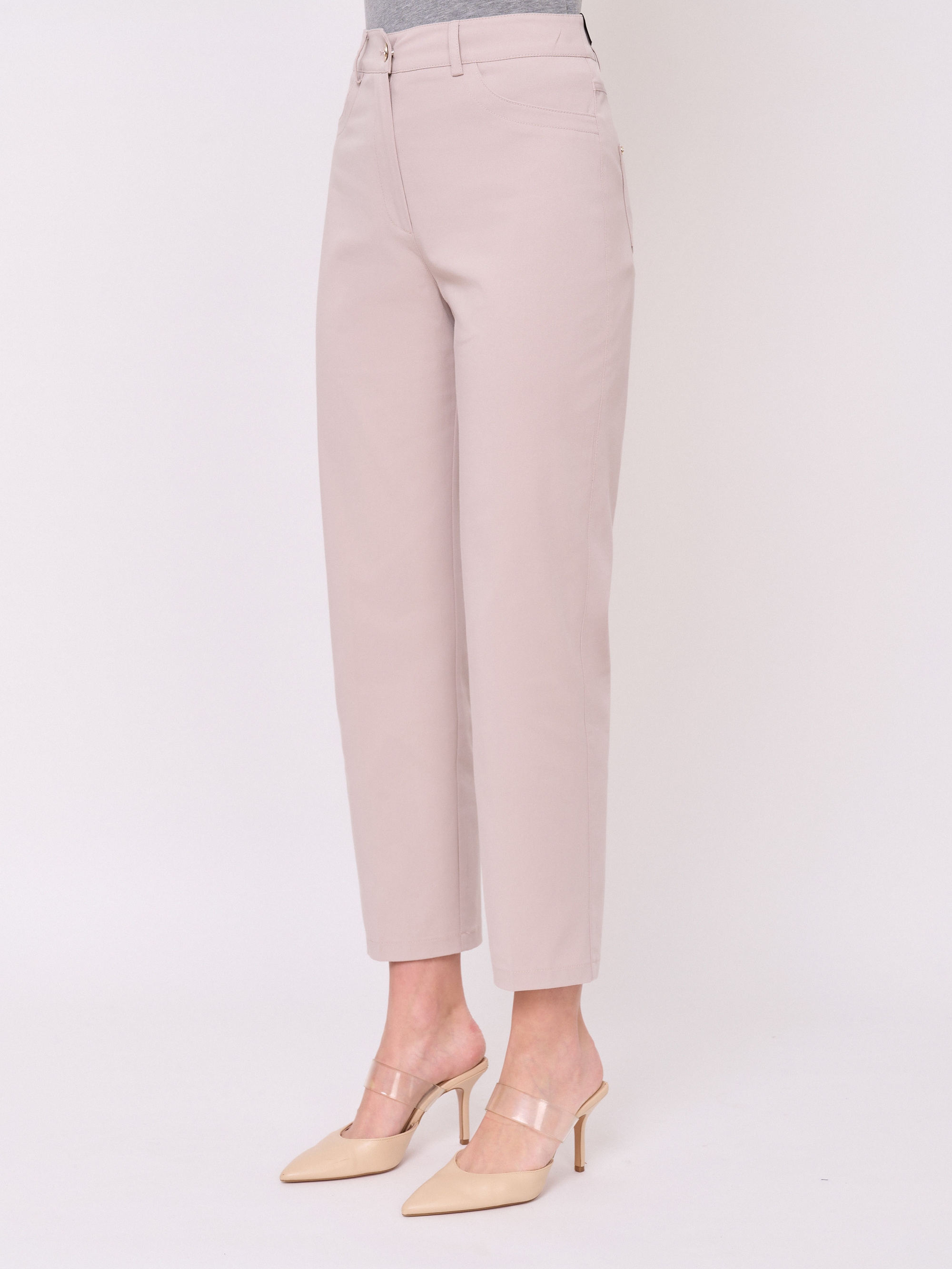 Застежка молния, без рисунка, карманы с отрезным бочком, крой брючин зауженный, посадка средняя. Длина брючин: 68 см