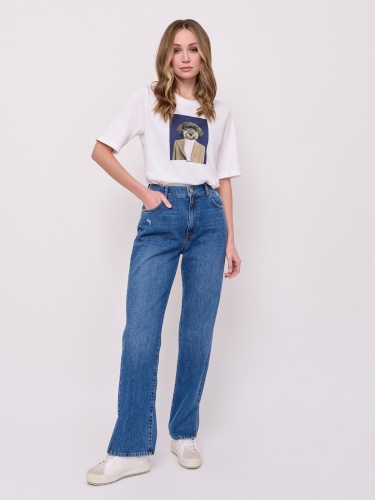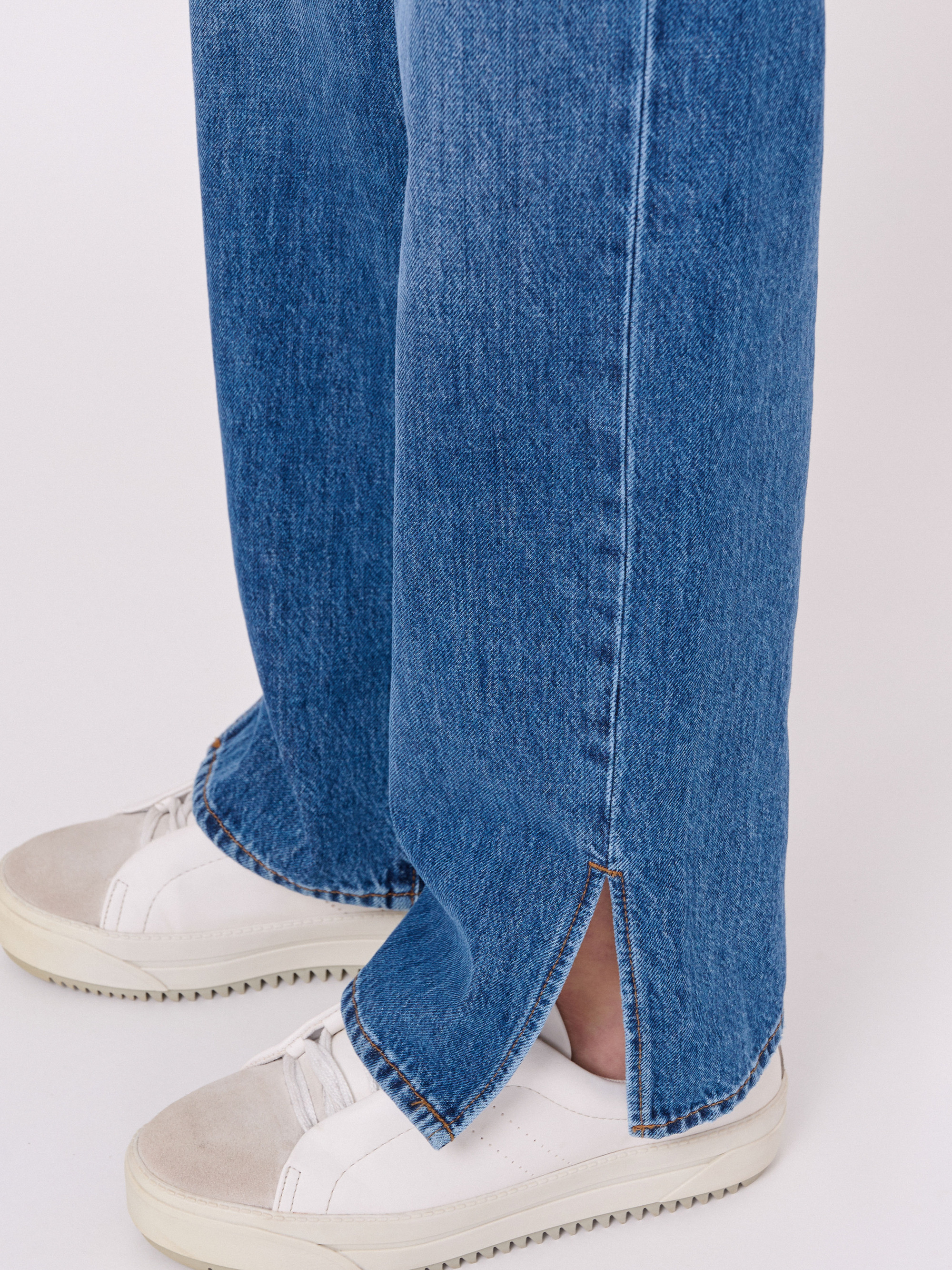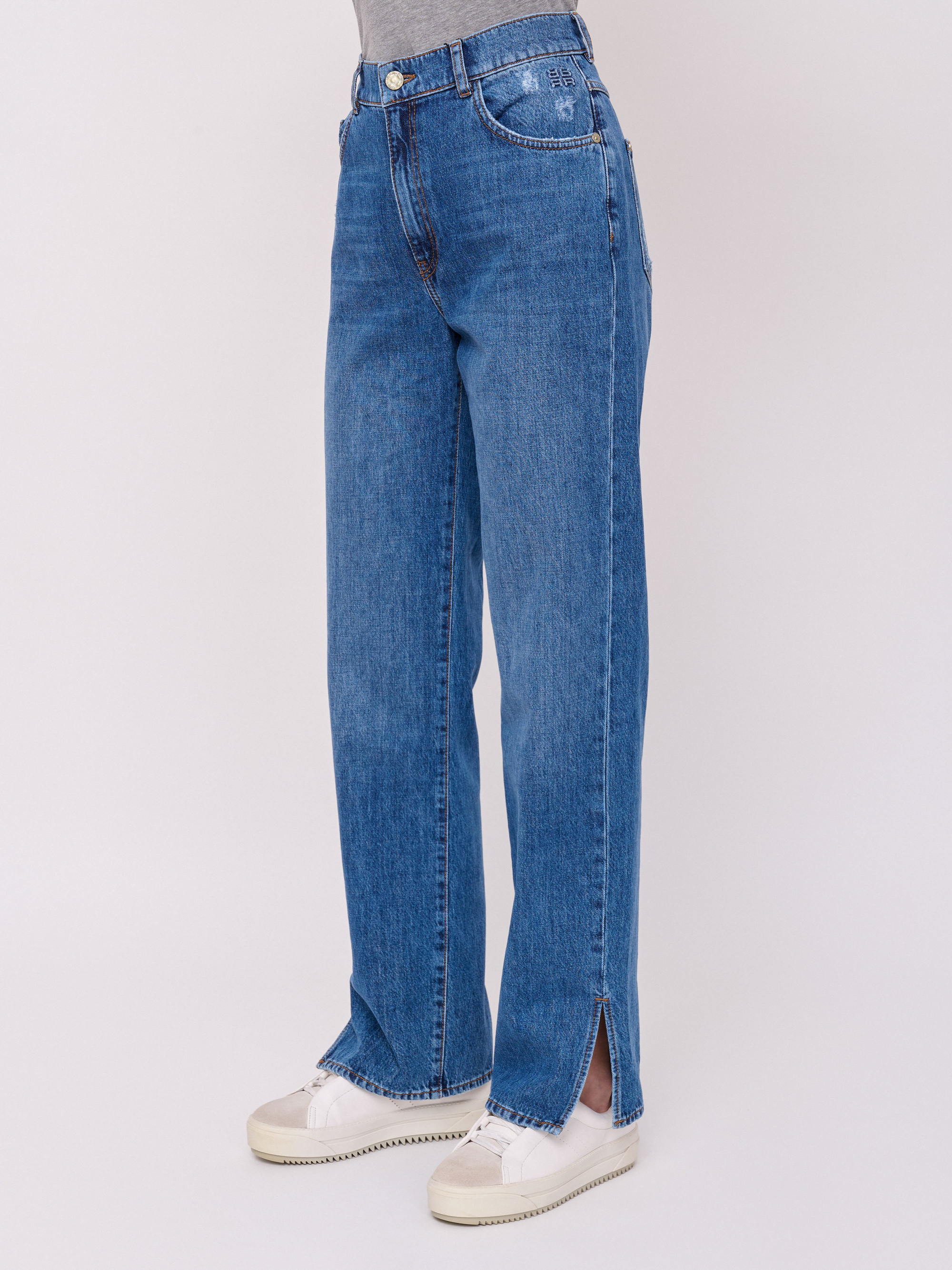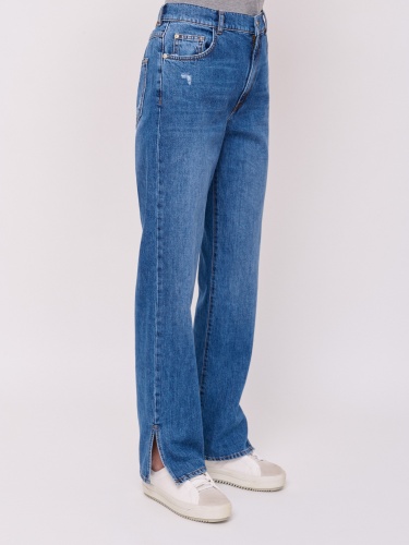 Детали: застежка молния, без рисунка, карманы с отрезным бочком, крой брючин прямой, посадка средняя, боковые разрезы. Длина брючин: 80 см.