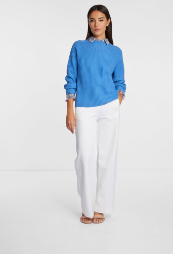 Благодаря непринужденной посадке эти брюки удачно отражают спокойную роскошную тенденцию. Это также обеспечивается за счет сверхмягкой смеси материалов с хлопком и эластаном. Брюки застегиваются на молнию и пуговицу. Эластичный пояс со шнурком подчеркивает комфорт. Длина для размера 42: 80 см.