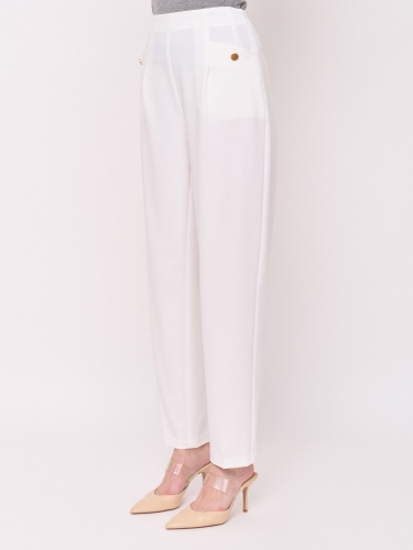 Детали: костюмные брюки, застежка молния, без рисунка, карманы с отрезным бочком, крой брючин зауженный, посадка средняя. Длина брючин: 77 см. Идеально с жакетом UNQ (арт.24120010267)