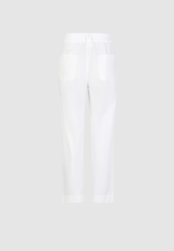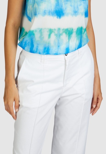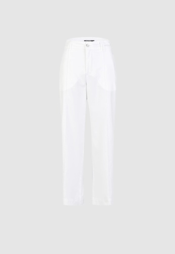 Укороченные брюки из легкого эластичного хлопка удобны в носке. Накладные ягодицы и карманы на крыльях особенно практичны. Прошитая окантовка добавляет дополнительные акценты.
