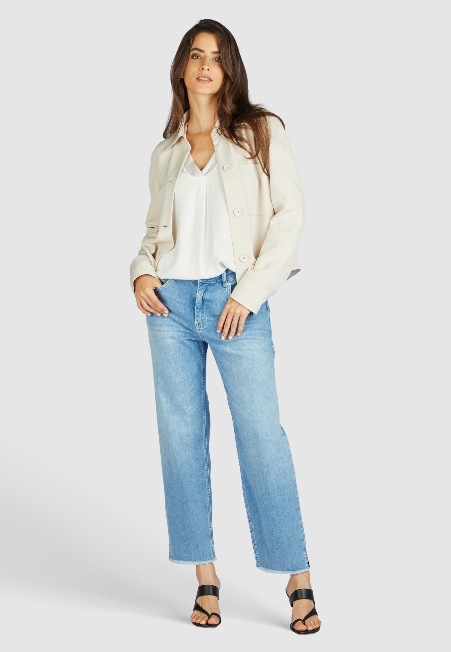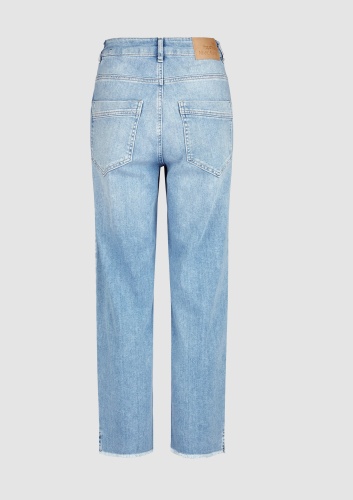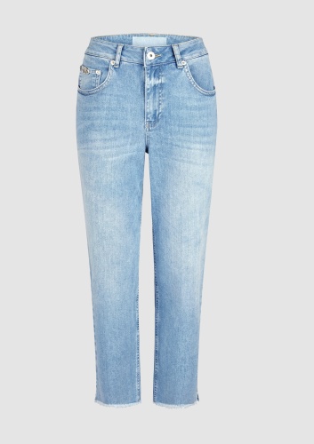 Джинсы Mom – это не только модно, но и очень удобно. Свободный крой и материал из эластичной смеси хлопка обеспечивают дополнительный комфорт в этих синих джинсовых брюках. Подол с бахромой расставляет акценты и подчеркивает повседневный дизайн этих брюк в классическом стиле с пятью карманами.