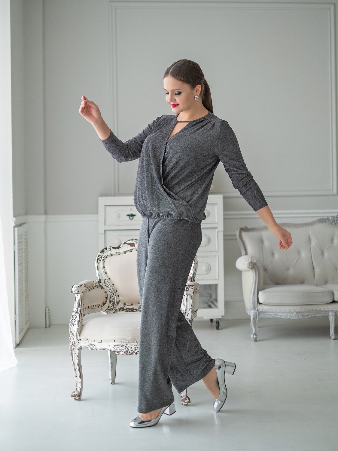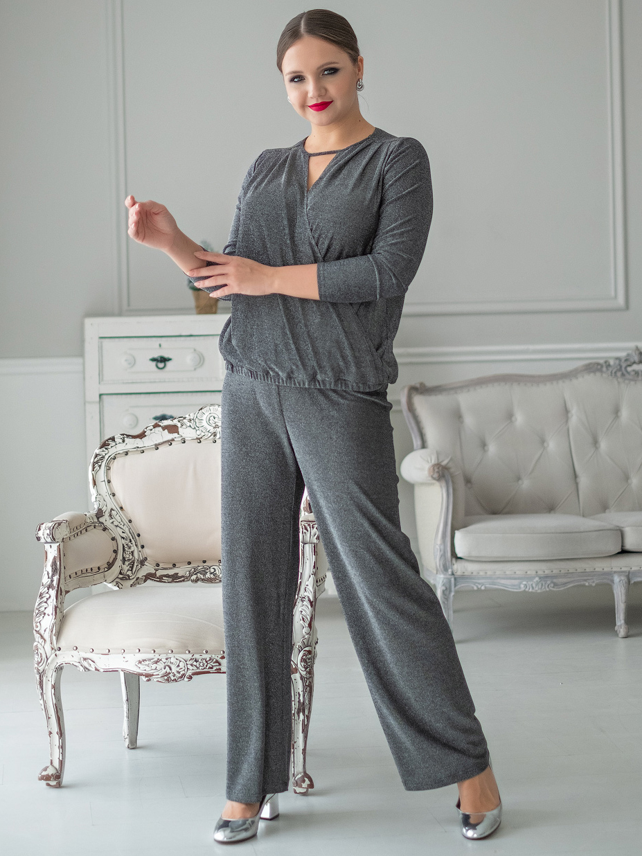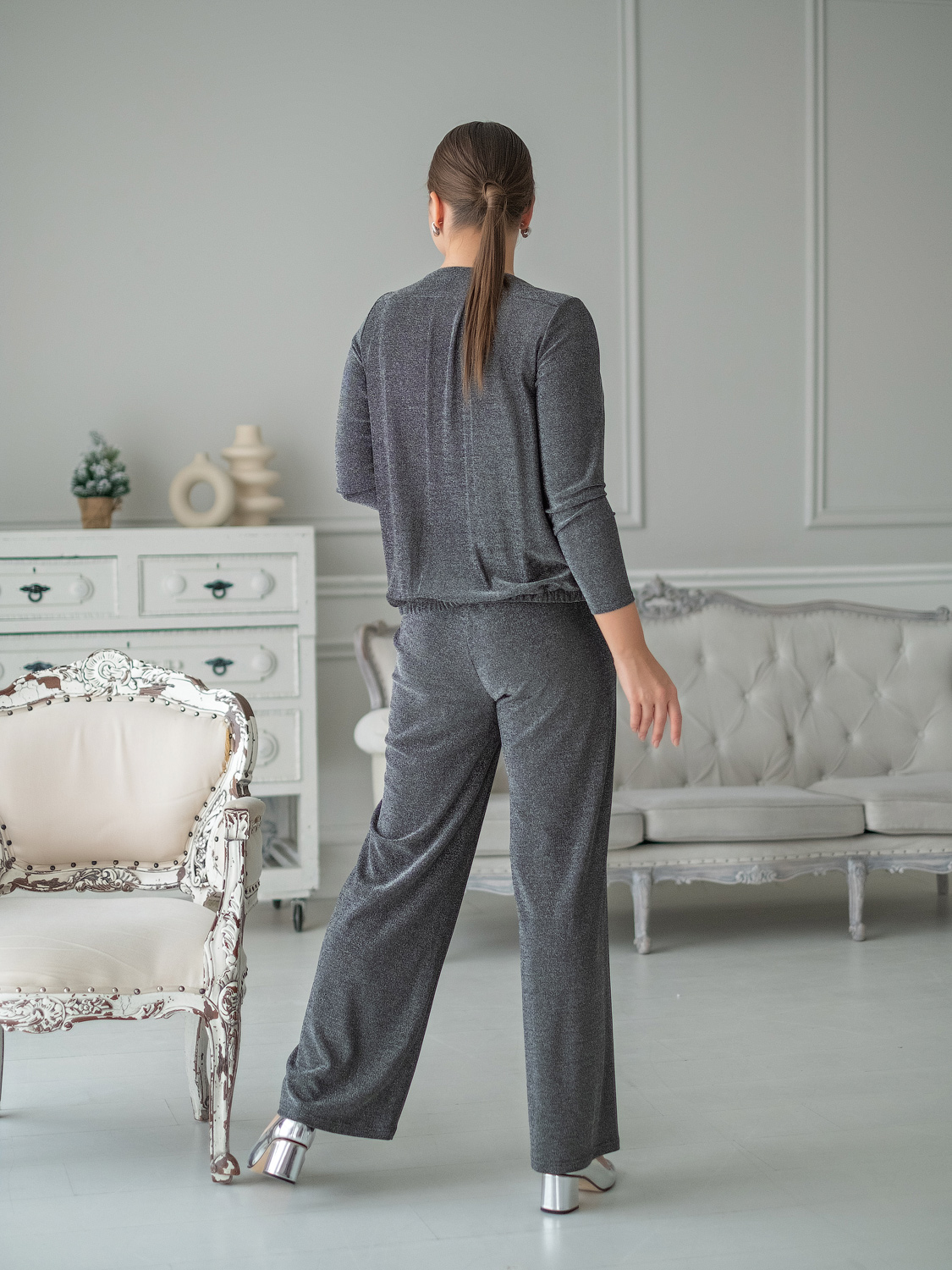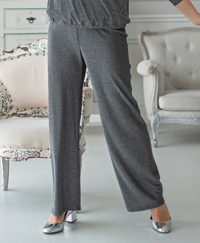 Стильные брюки свободного кроя с нитью люрекса в составе можно сочетать с джемпером из того же материала для создания сияющего образа на любом торжественном мероприятии!