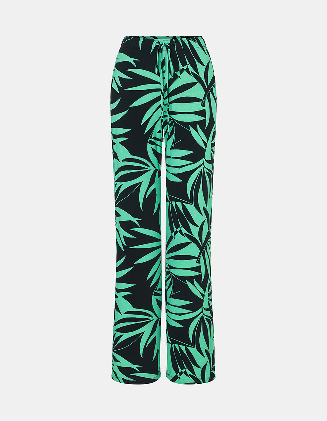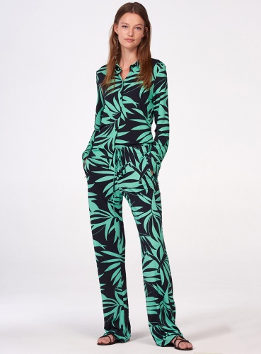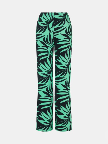 Широкие брюки в трендовом тропическом принте. Пояс на кулиске, карманы на молниях. Приятный к телу материал из вискозной смеси.