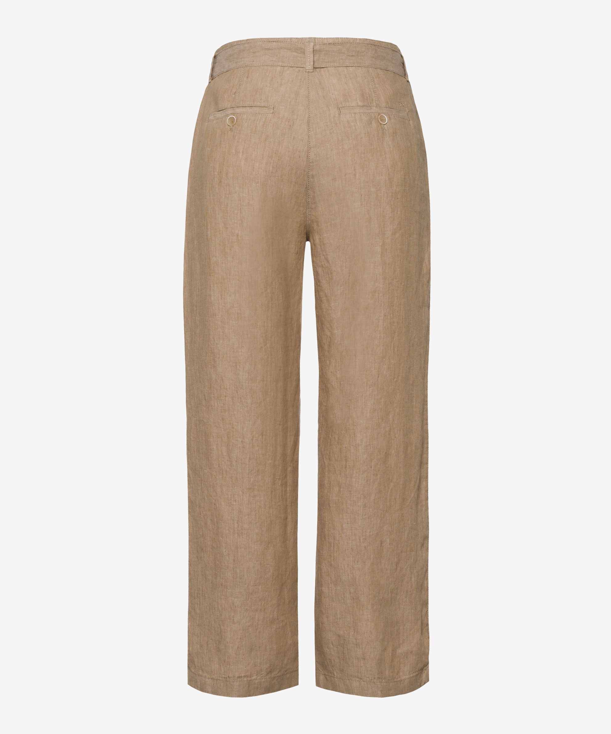 Укороченные брюки свободного силуэта выполнены из 100%-го льна. Комфортная высокая посадка. В комплекте идет пояс из основного материалв изделия. Врезные карманы с листочками сзади. Брюки идеально подойдут для жаркой летней погоды, обеспечат комфортную терморегуляцию.