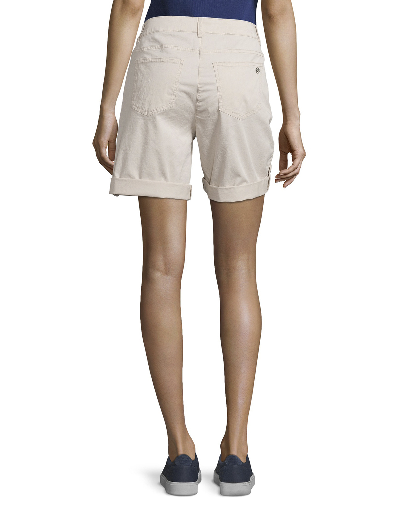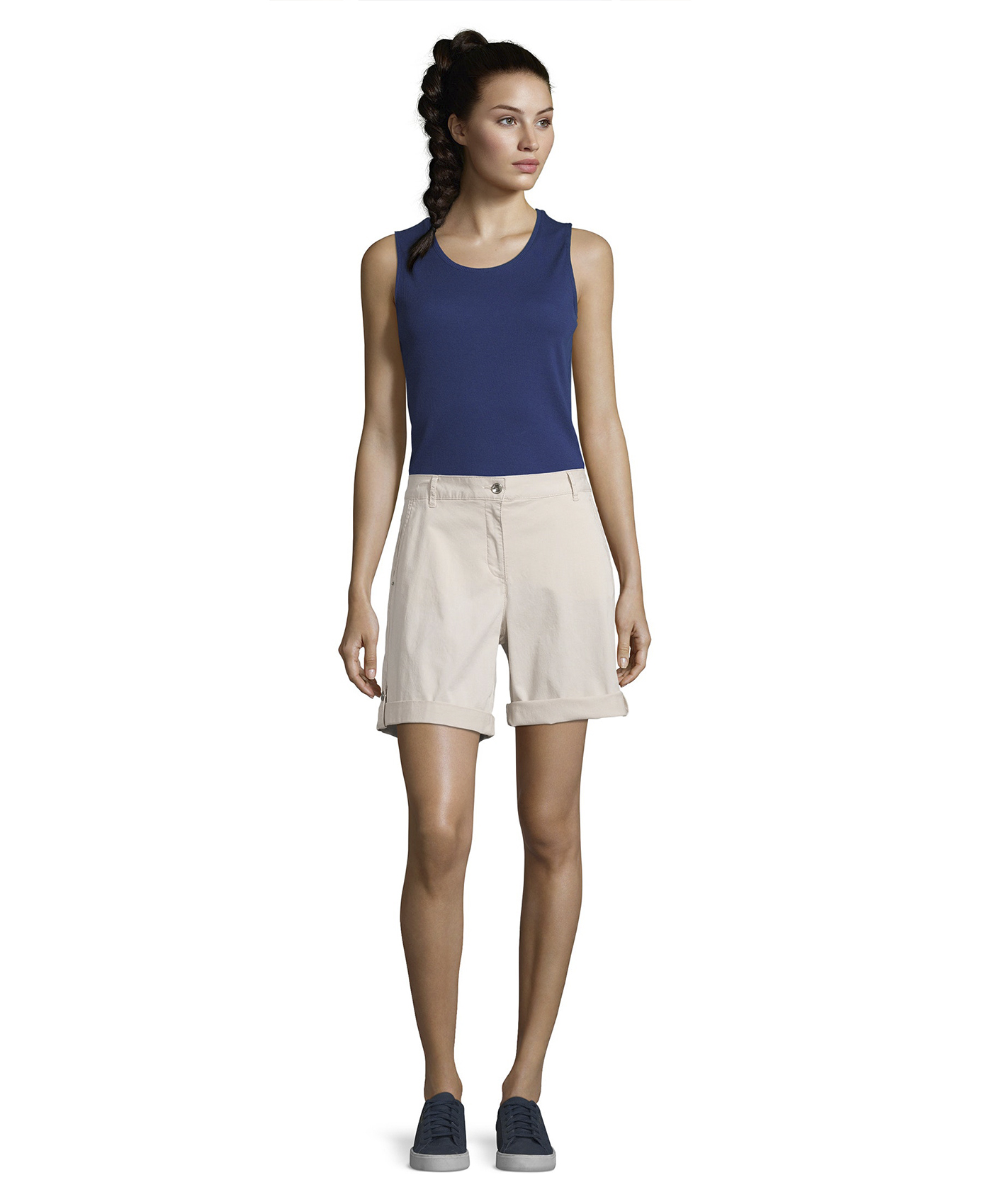 Шорты-бермуды - абсолютно трендовая модель! Посадка по талии, модный свободный крой. Приятный к телу материал из хлопковой смеси. Эти шорты можно комбинировать с любым вариантом верха и обуви и каждый раз получать ультрасовременный образ.