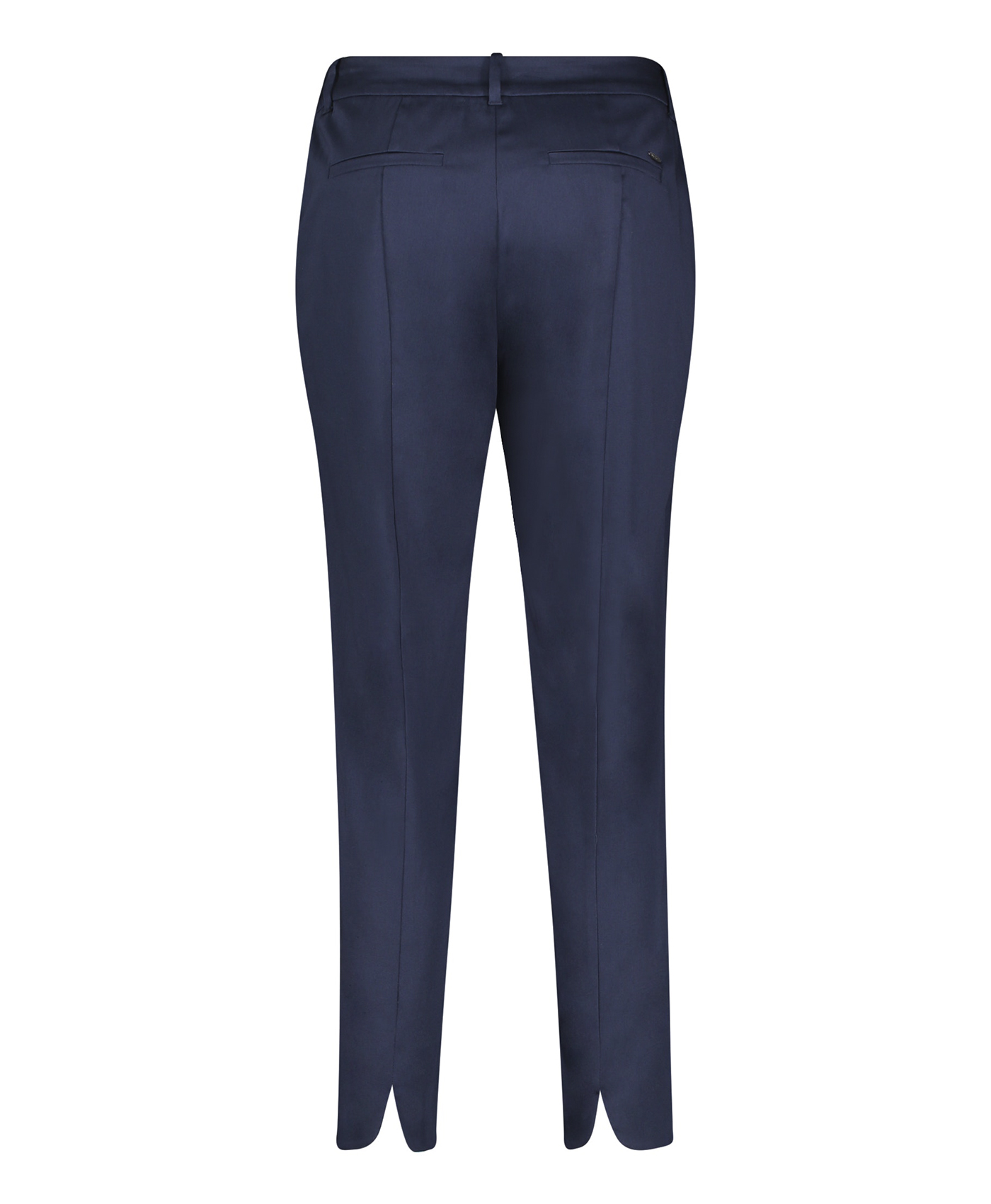 Брюки прямого кроя со стрелками. Небольшие разрезы на задней части низа брючин. Укороченная длина брюк позволяет подчеркнуть модную обувь. Приятный к телу материал из хлопковой смеси. Эти брюки гарантируют трендовый образ в сочетании с любым верхом и обувью.