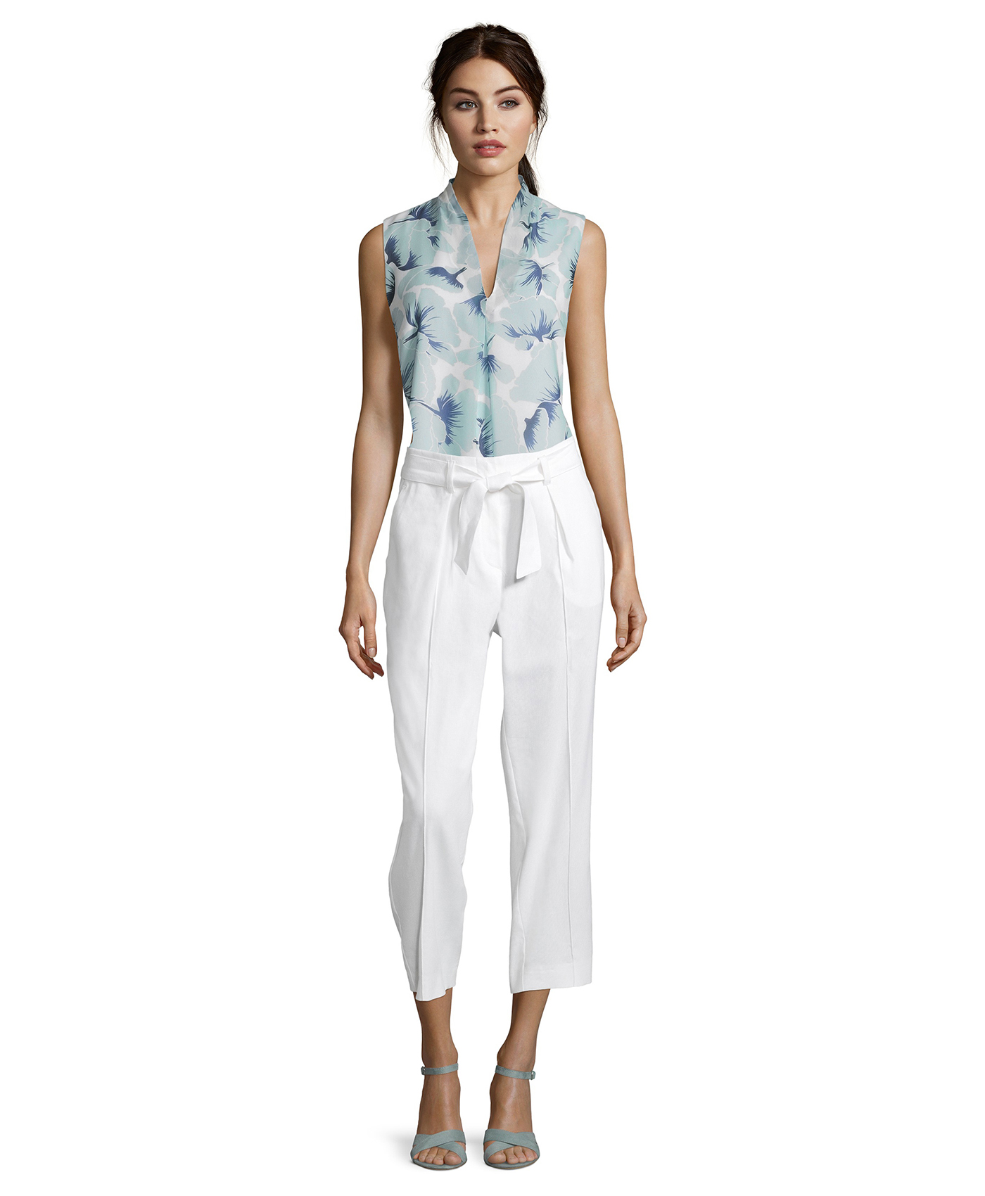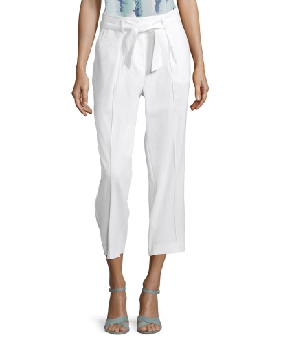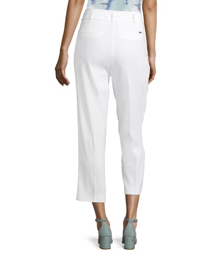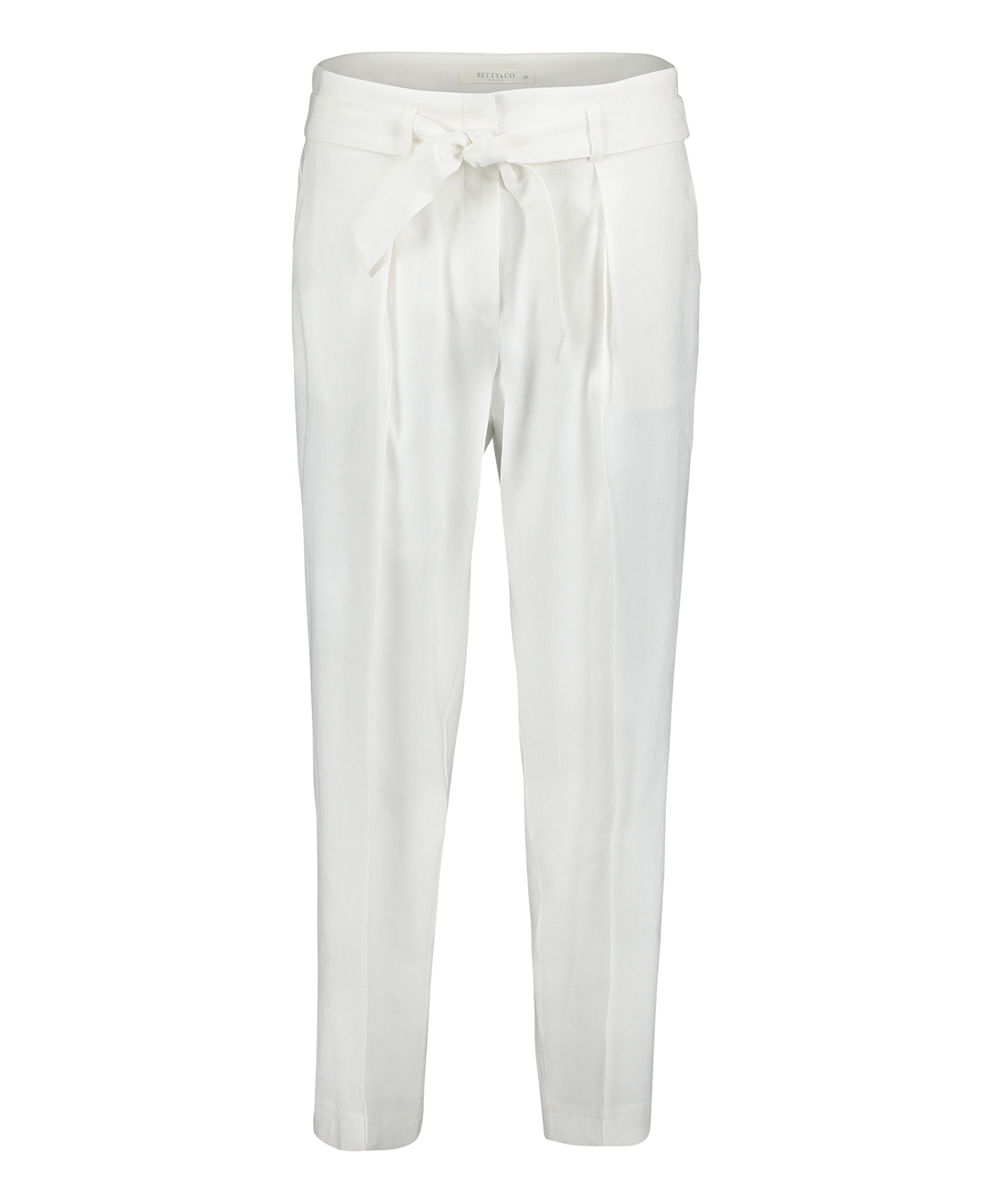 Брюки прямого кроя. Элегантность модели придают стрелки и пояс-бант. Укороченная длина позволяет подчеркнуть модную обувь. Материал брюк приятен к телу и обеспечивает комфорт. Независимо от выбора верха и обуви, с этими брюками вы в тренде!