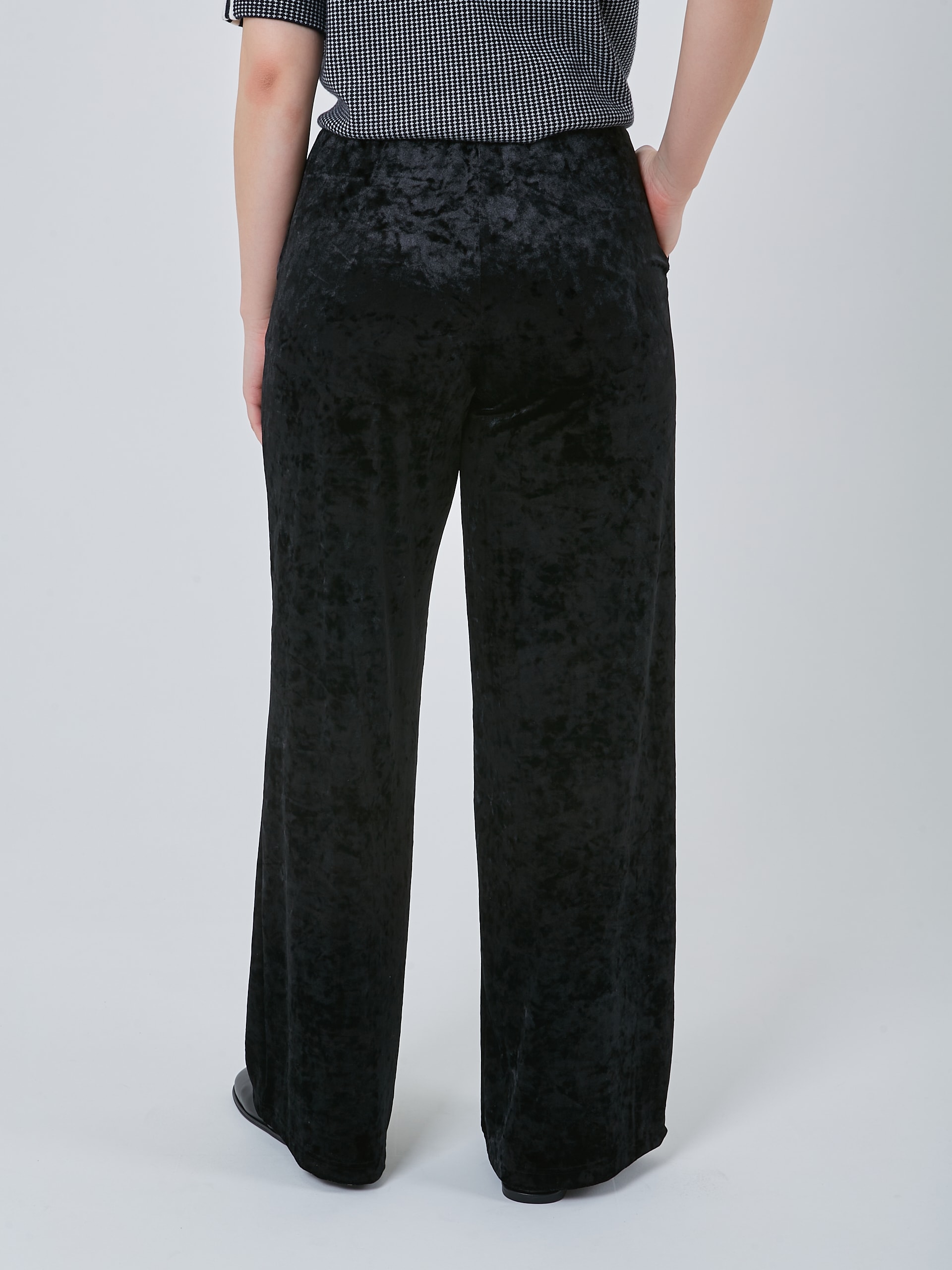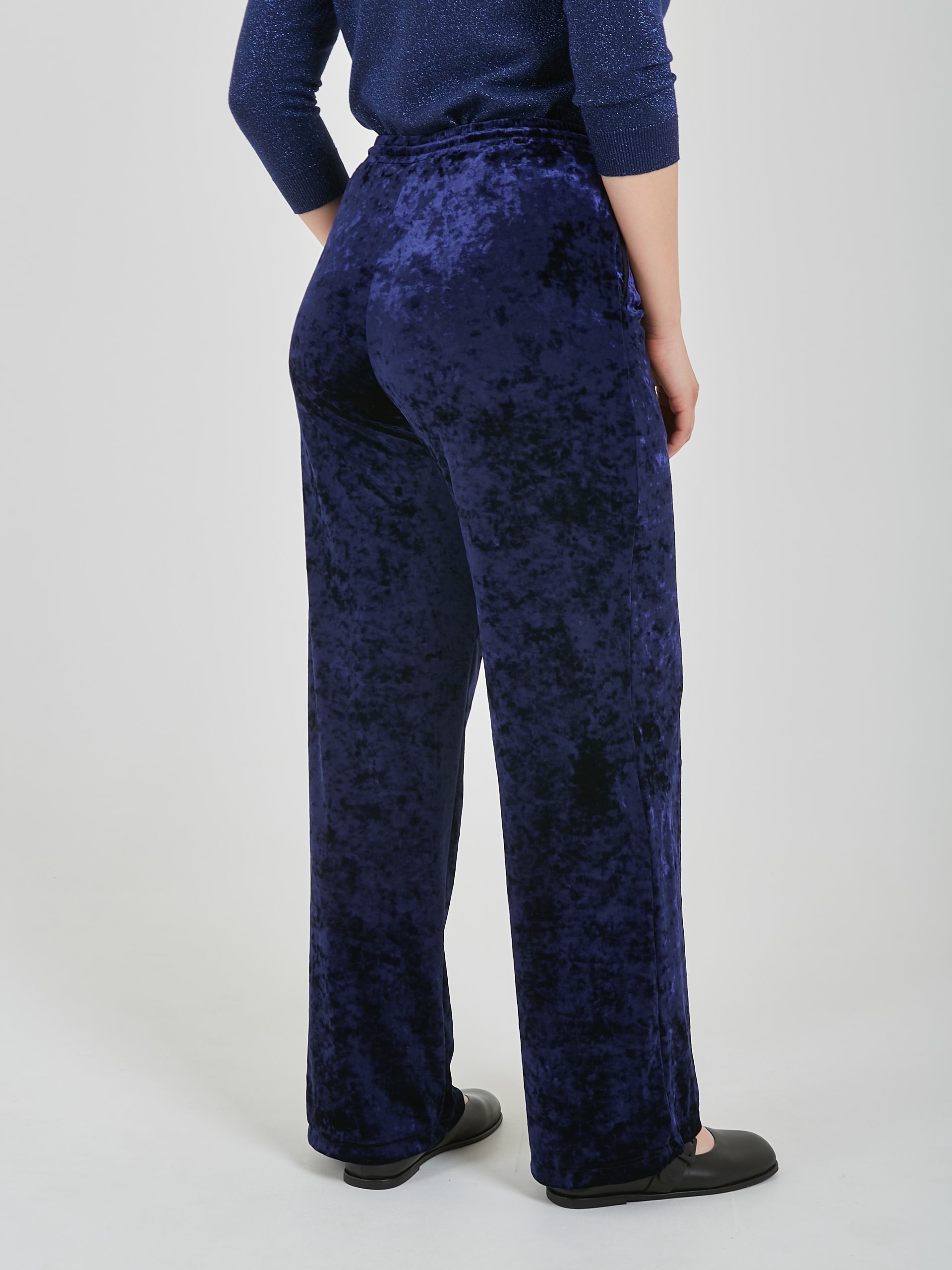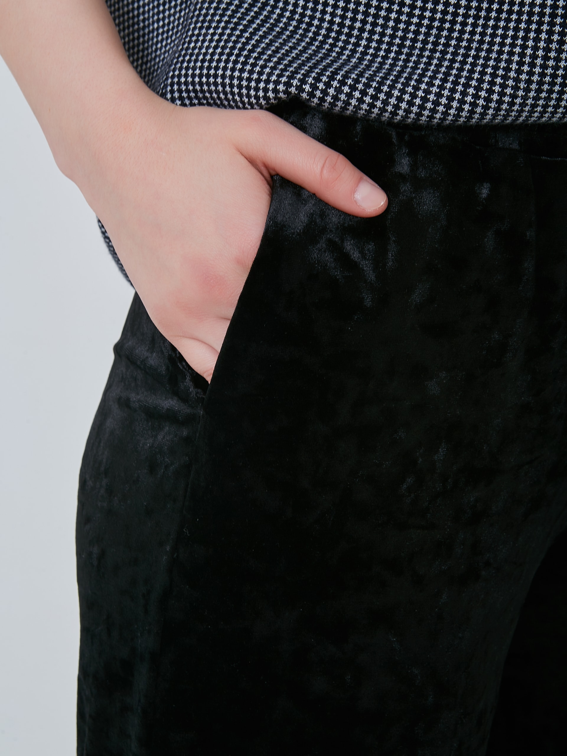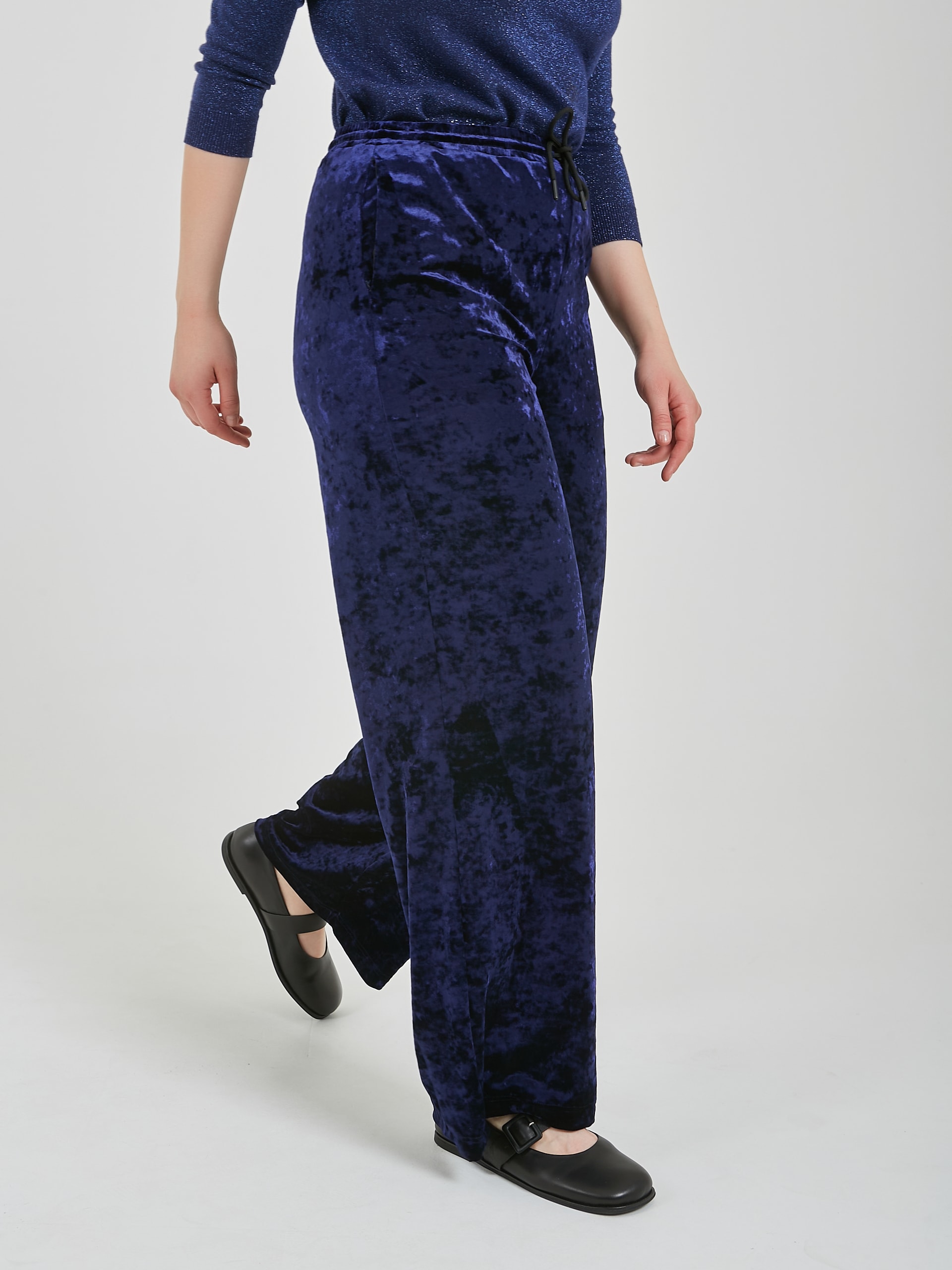 Чёрные и тёмно-синие брюки палаццо из бархата - практичный вариант для прогулки или офисного стиля. Осень-Зима'25/26. Капсула "Лиловый шар"