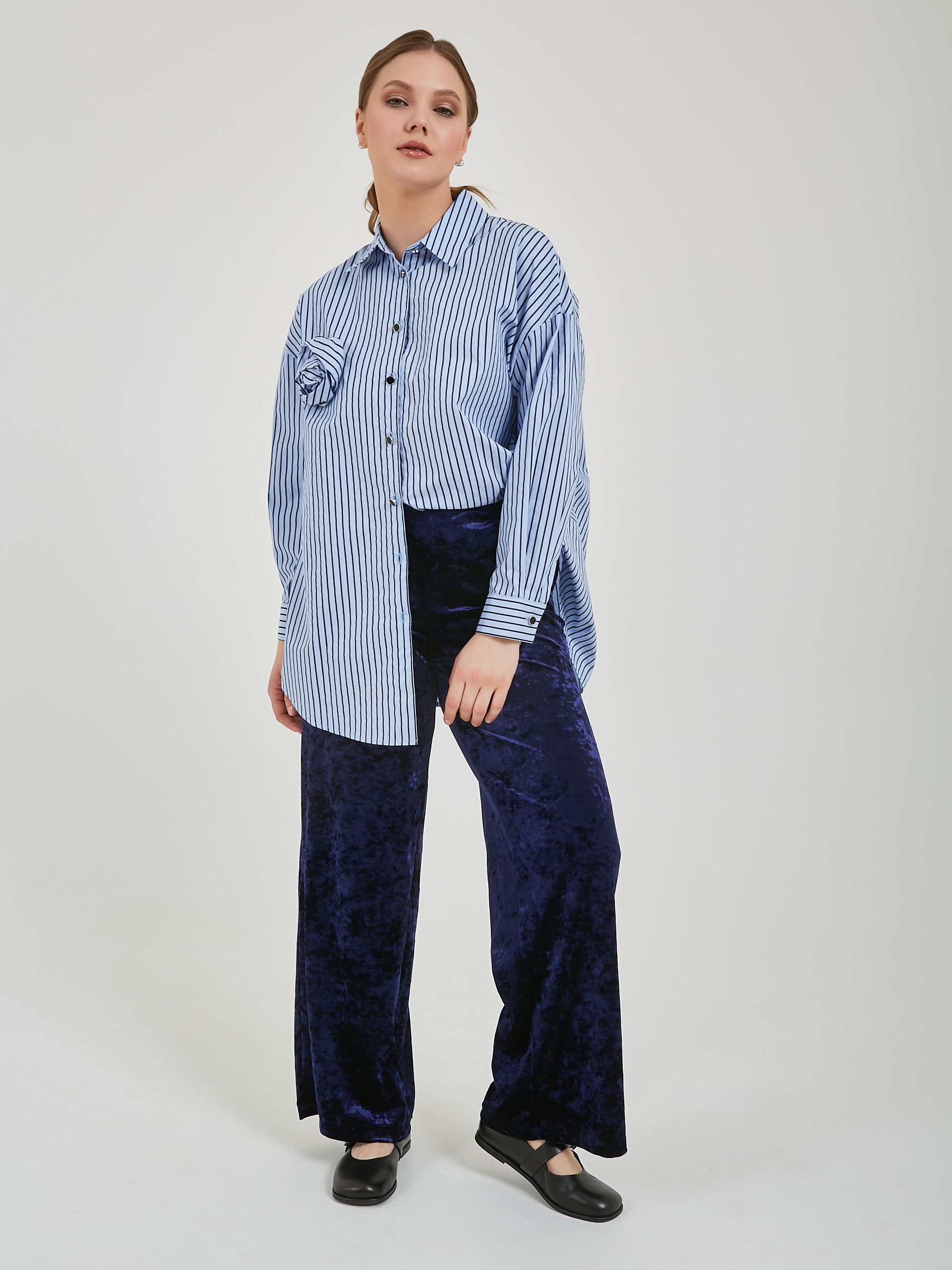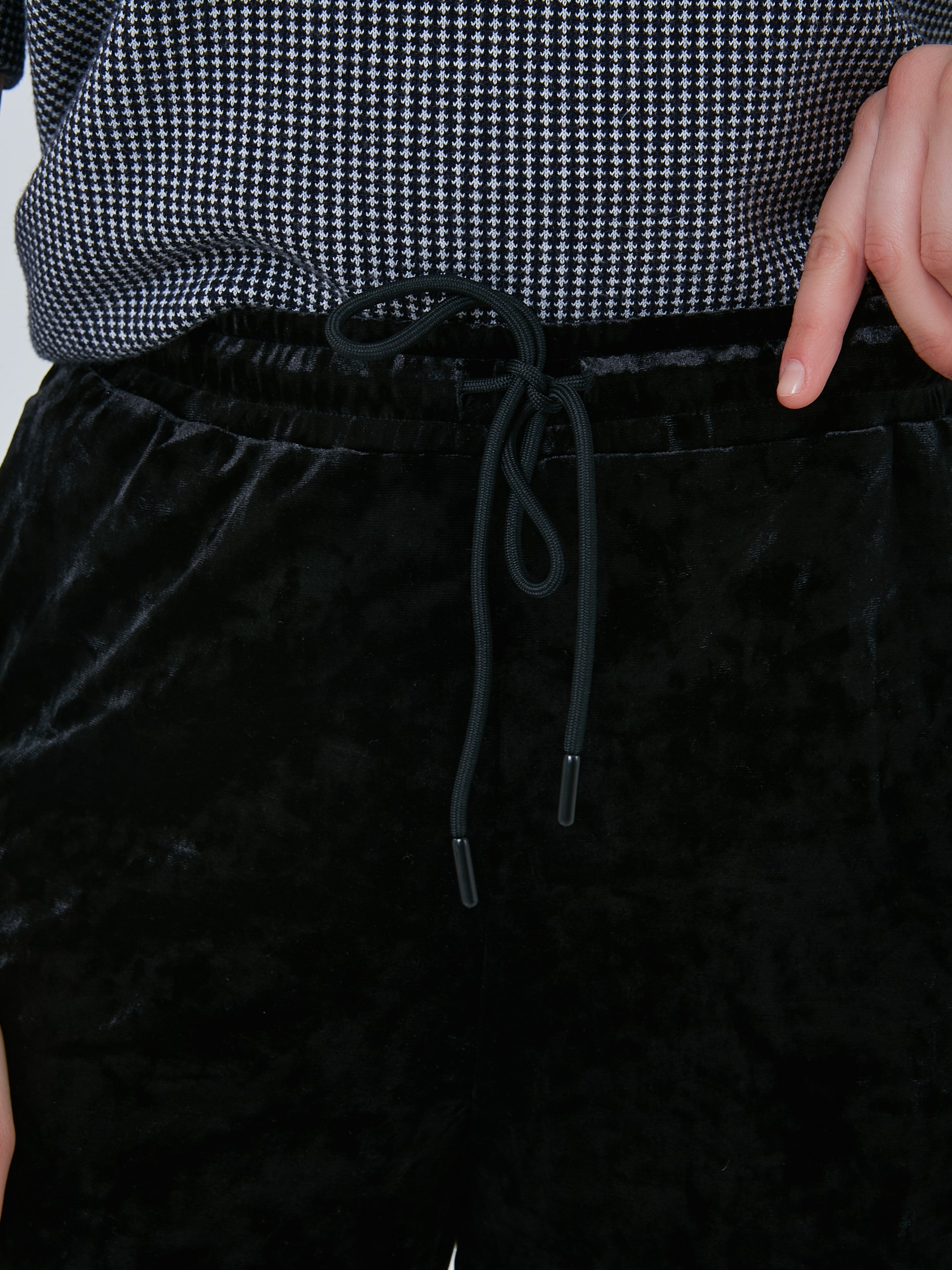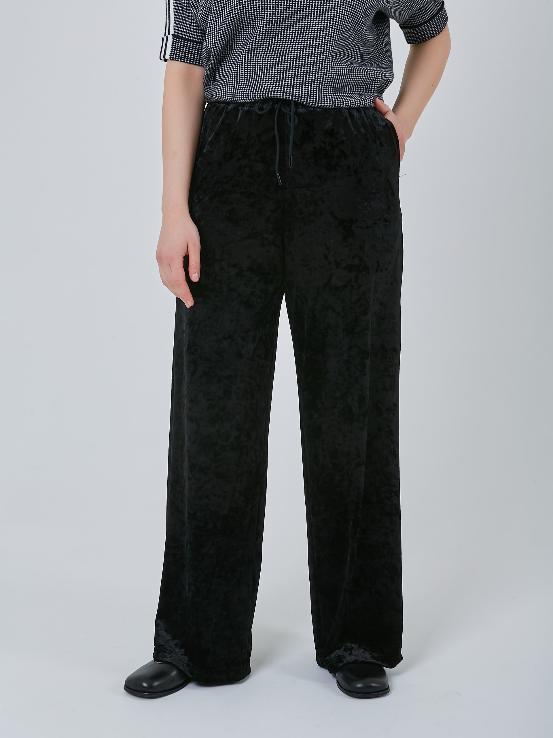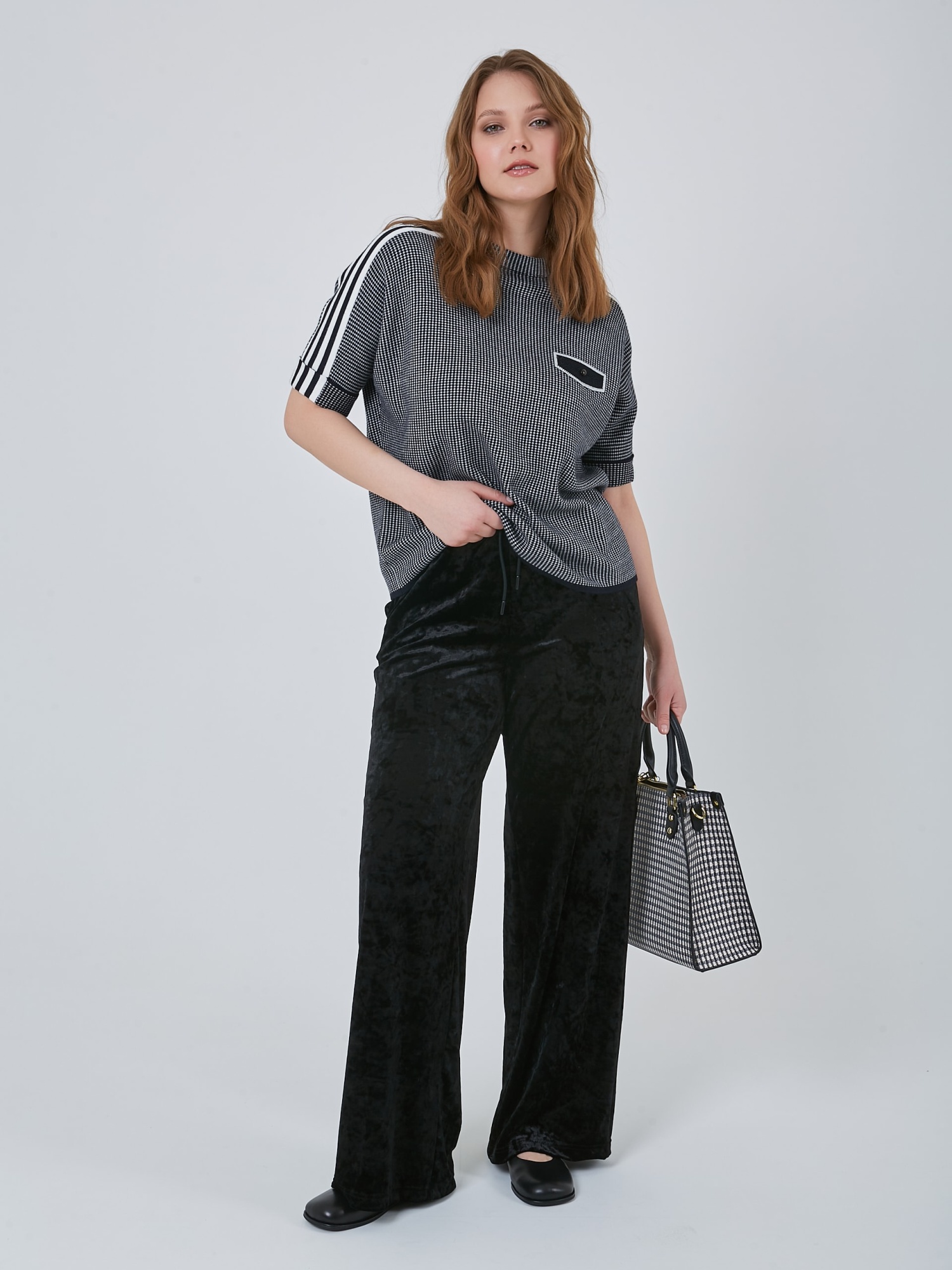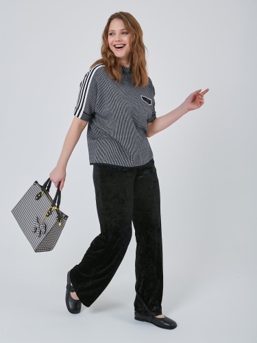 Чёрные и тёмно-синие брюки палаццо из бархата - практичный вариант для прогулки или офисного стиля. Осень-Зима'25/26. Капсула "Лиловый шар"