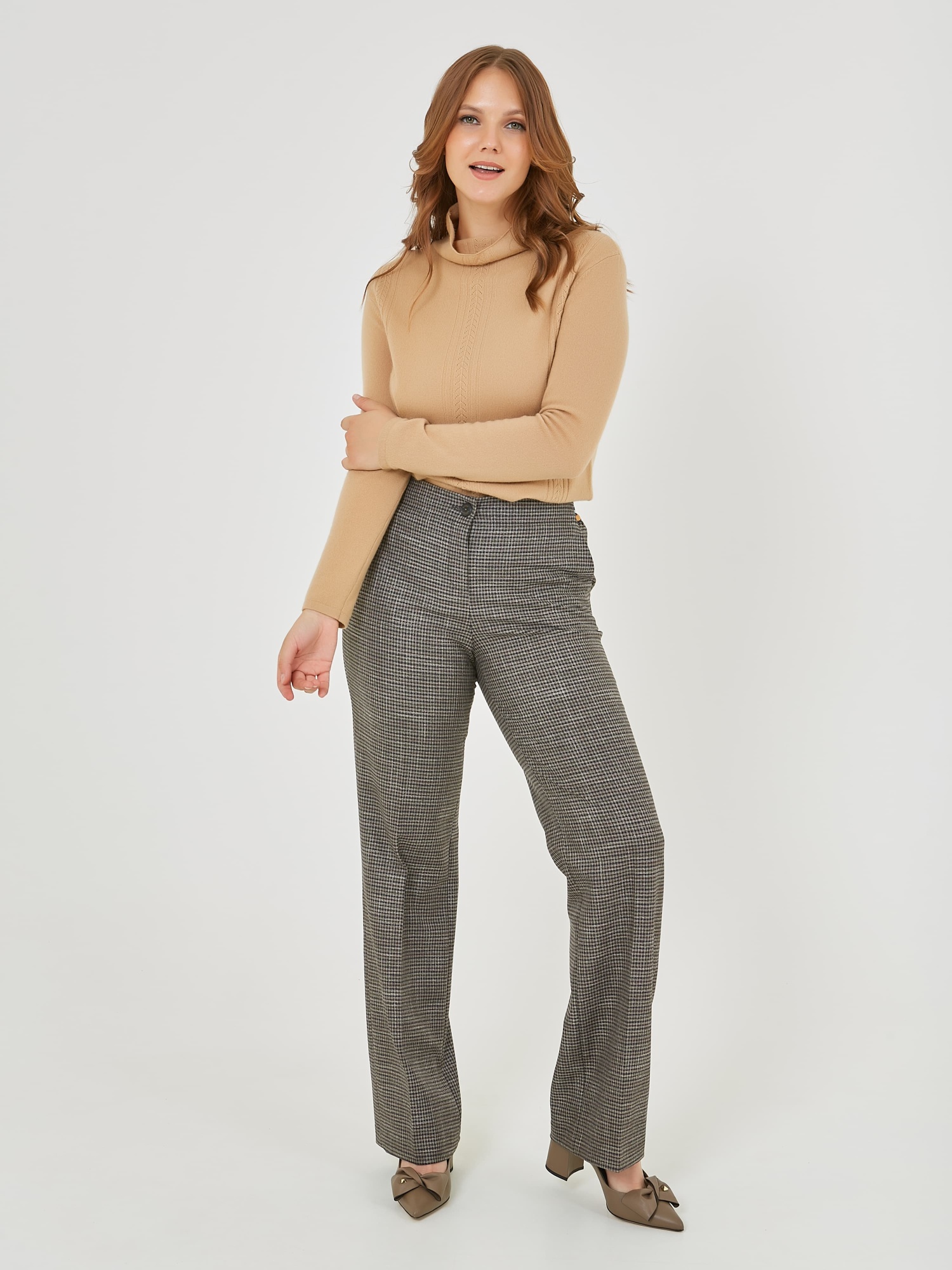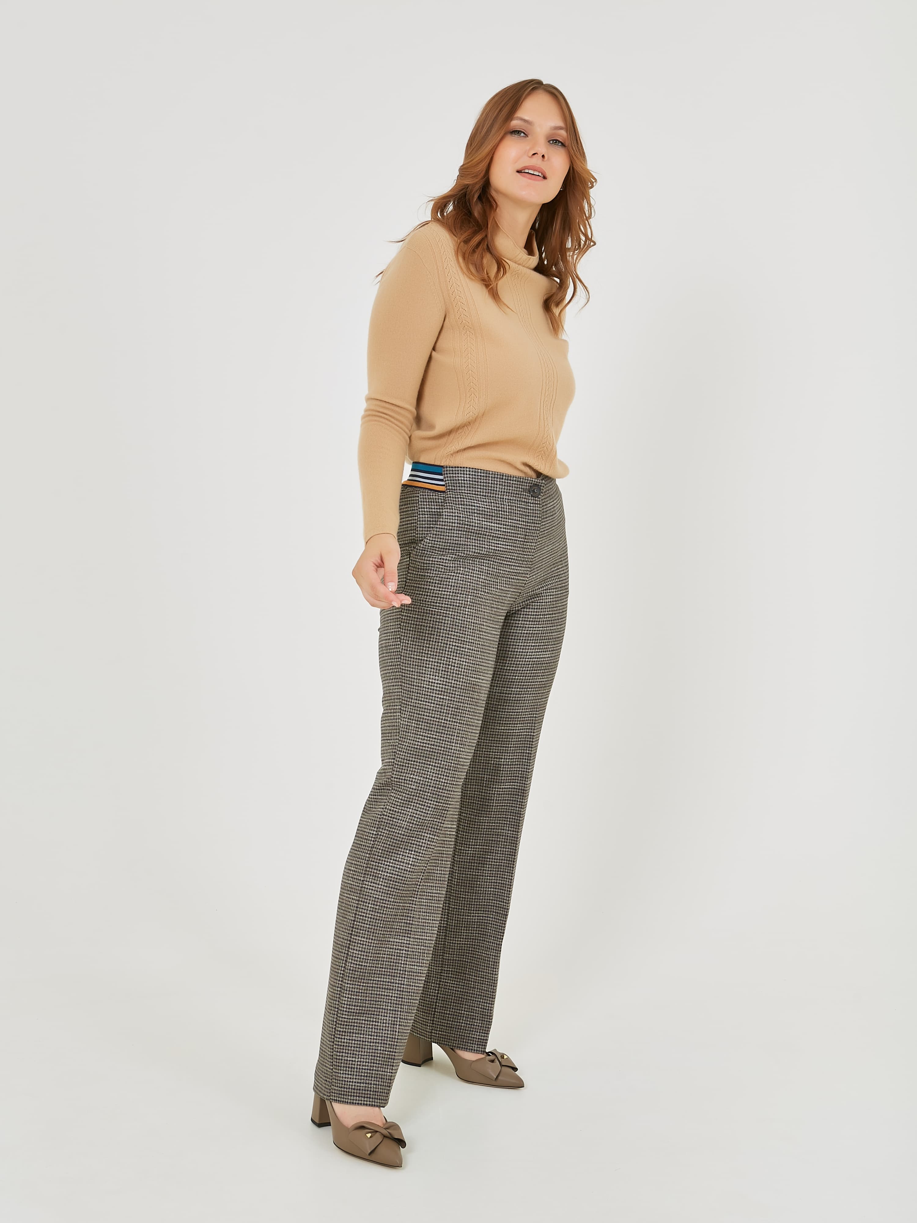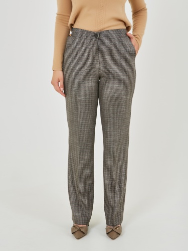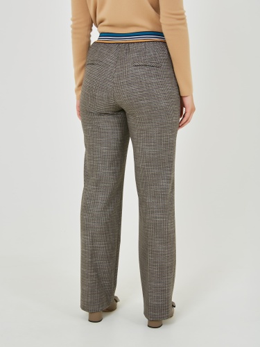 Брюки в мелкую клетку Petit с классическим поясом и немного зауженными к низу брючинами. Коллекция Осень-Зима 2024-2025. Капсула "Кошки".