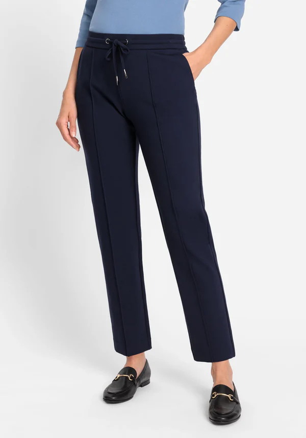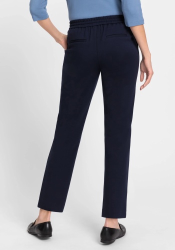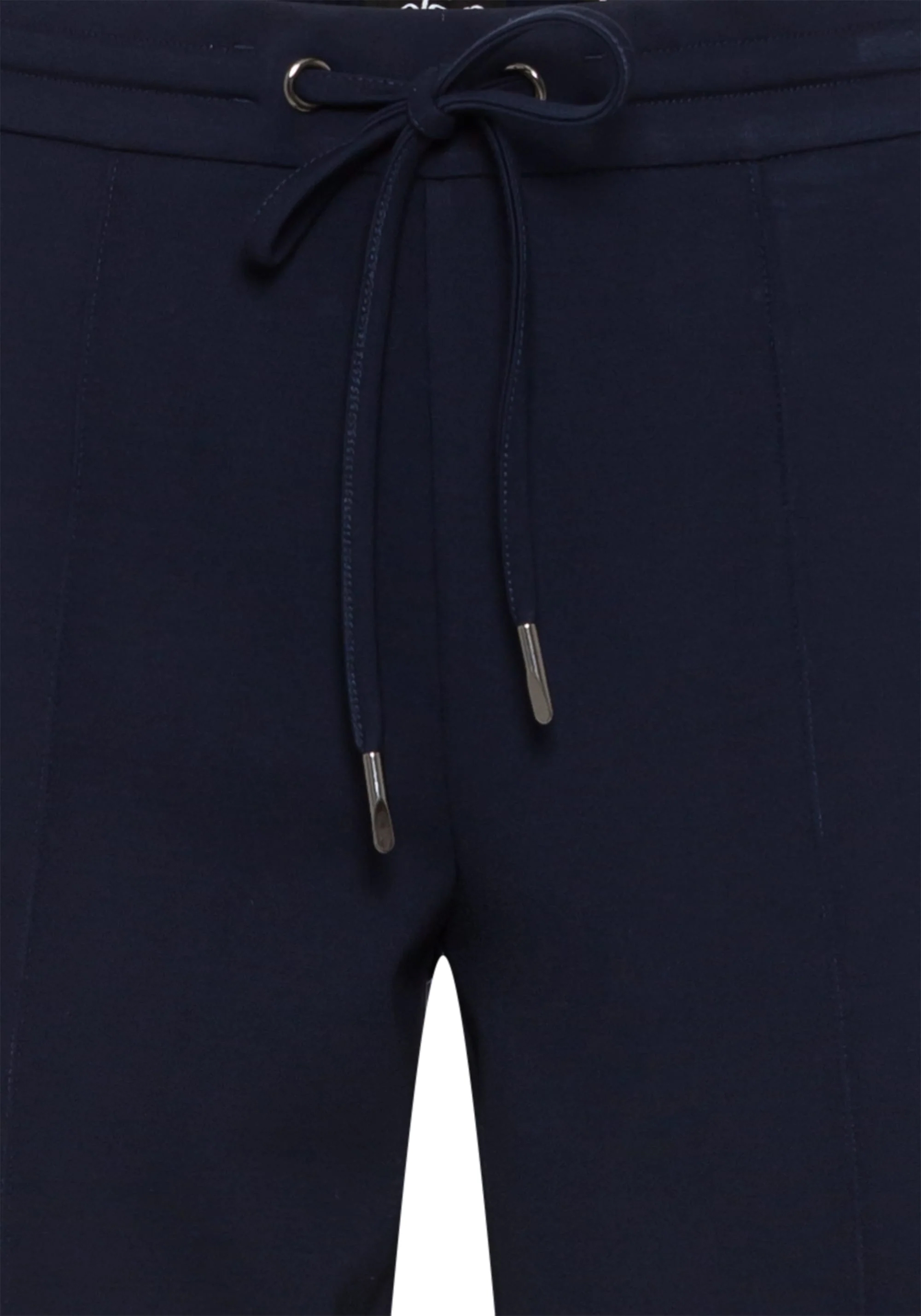 Укороченные брюки из прочного, эластичного трикотажа джерси. Особенности этих брюк включают в себя пояс на шнурке с резинкой сзади, центральные передние швы штанин, боковые прорезные карманы и задние прорезные карманы. Высокое содержание вискозы делает их мягкими на ощупь. Фасон свободный в области бедер и ягодиц и сидит немного ниже естественной линии талии для комфортной носки.