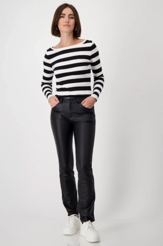 Брюки MONARI, имитирующие кожу, изготовлены из высококачественного хлопка и благодаря эластичному материалу обеспечивают удобную, но элегантную посадку.