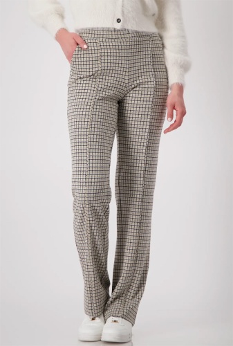 Брюки MONARI в клетку изготовлены из высококачественной смесовой вискозы и обеспечивают удобную посадку благодаря эластичному материалу.