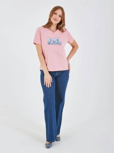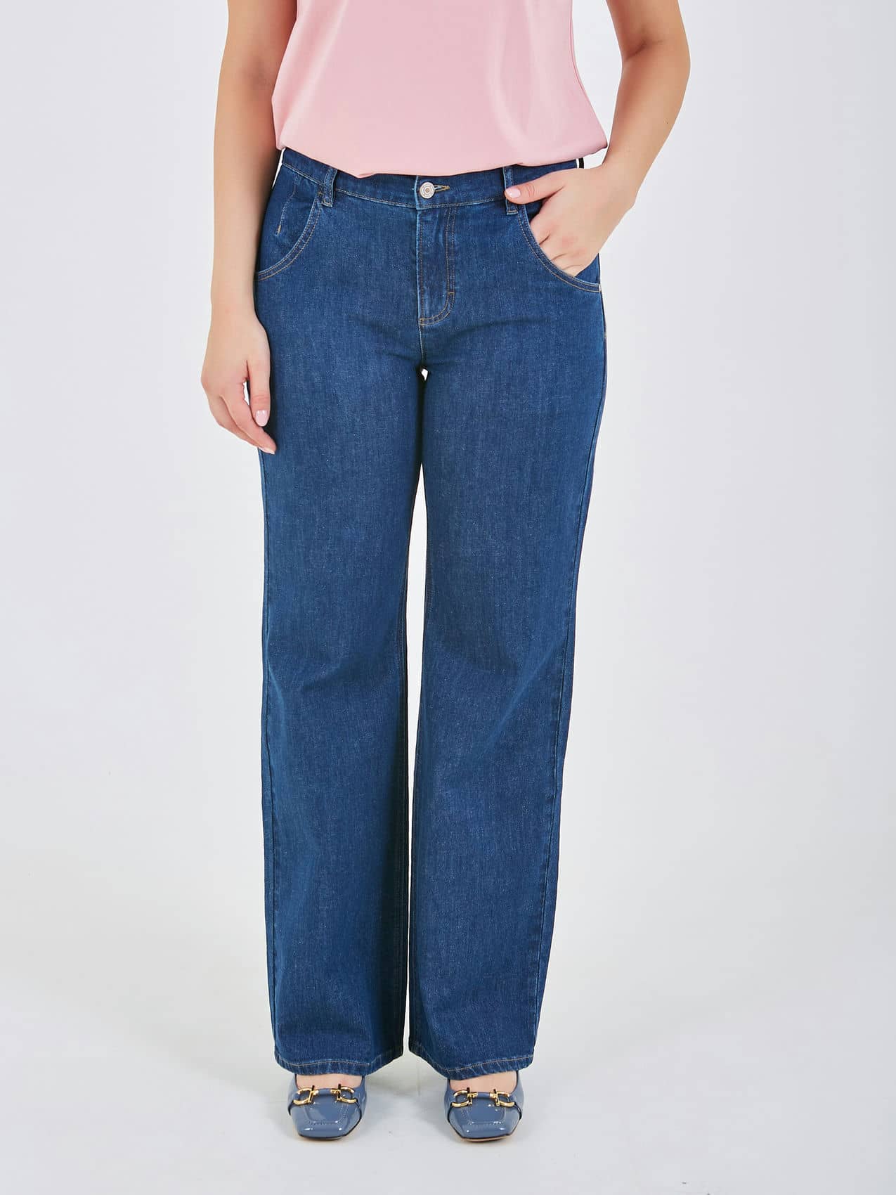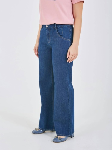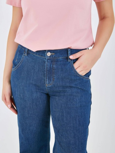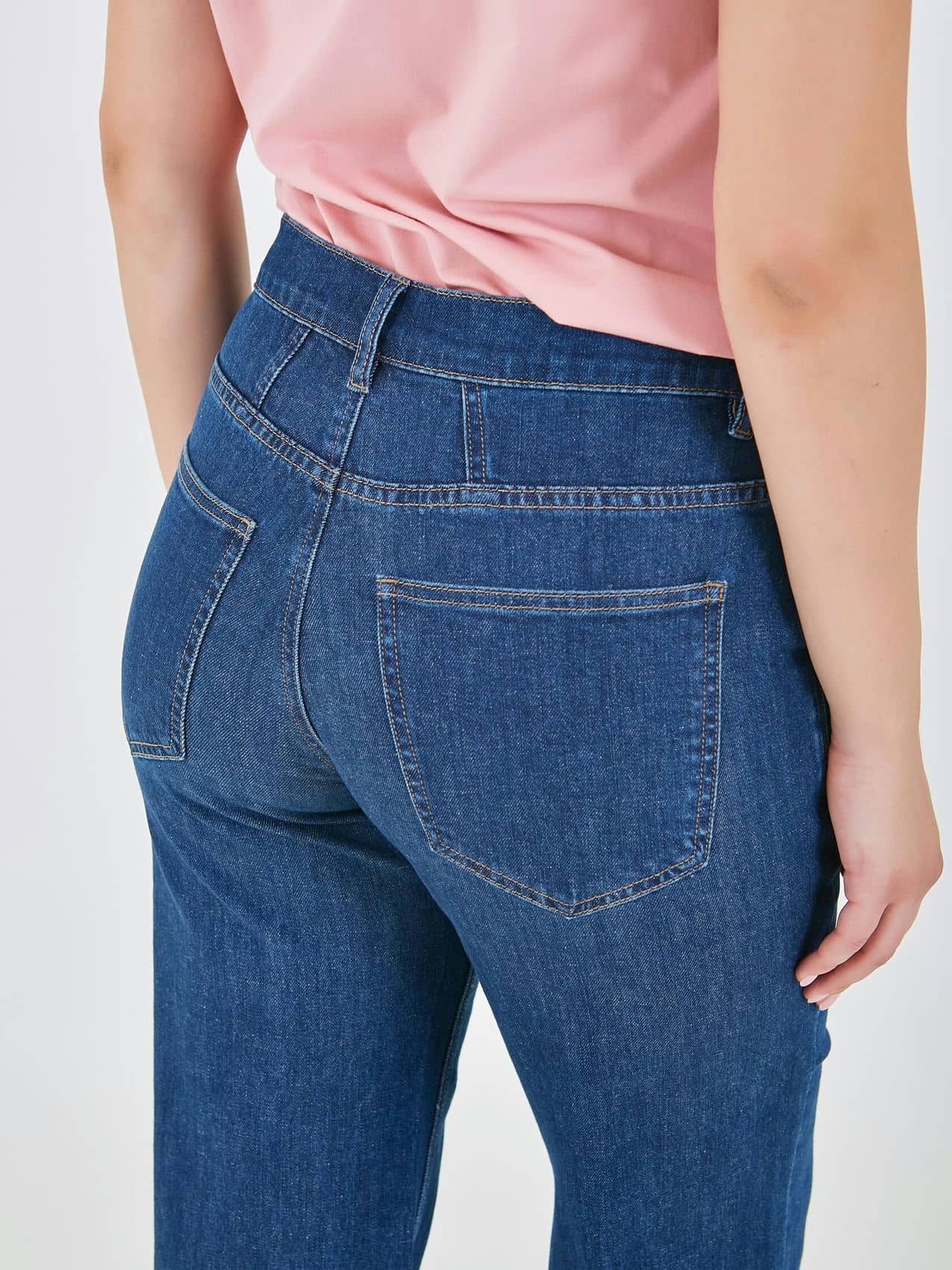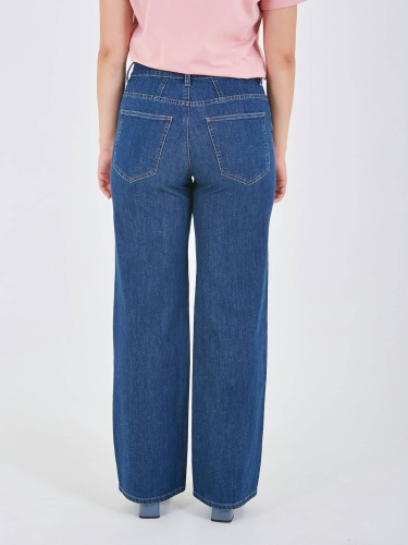 Классические джинсы прямого кроя на средней посадке и выточками на передних карманах. Коллекция Весна-Лето 2025-2026. Капсула "Самарканд". Параметры модели: 95-64-101, рост 175, размер 44-46