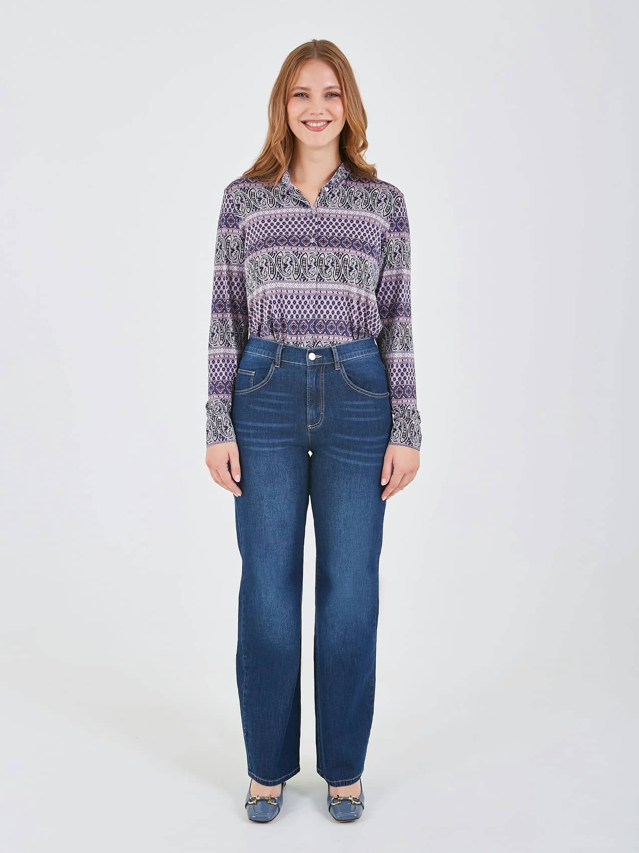 Классические джинсы — это стильный и универсальный предмет одежды из прочного денима, который легко комбинировать с различными нарядами. Коллекция Весна-Лето 2025. Капсула "Самарканд". Параметры модели: 95-64-101, рост 175, размер 44-46