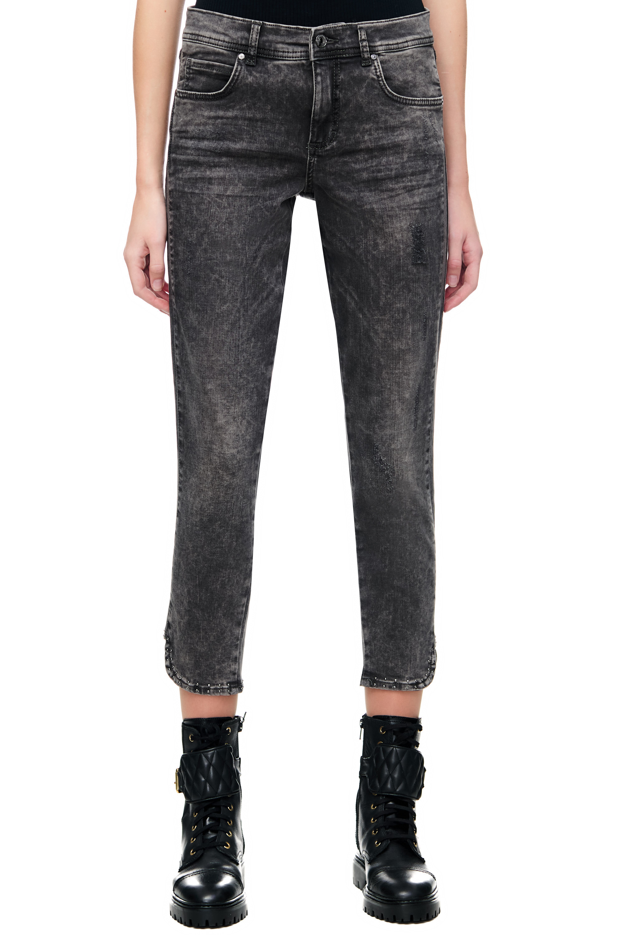 Укороченные джинсы Ornella Rock с эффектом потертостей из коллекции Angels. Модель зауженного кроя с застежкой-молнией и пуговицей, шлевками для ремня и 5-ю карманами. Изделие выполнено из смесового хлопка с добавлением эластичных волокон, обеспечивающих комфортную посадку на фигуре и свободу движений.