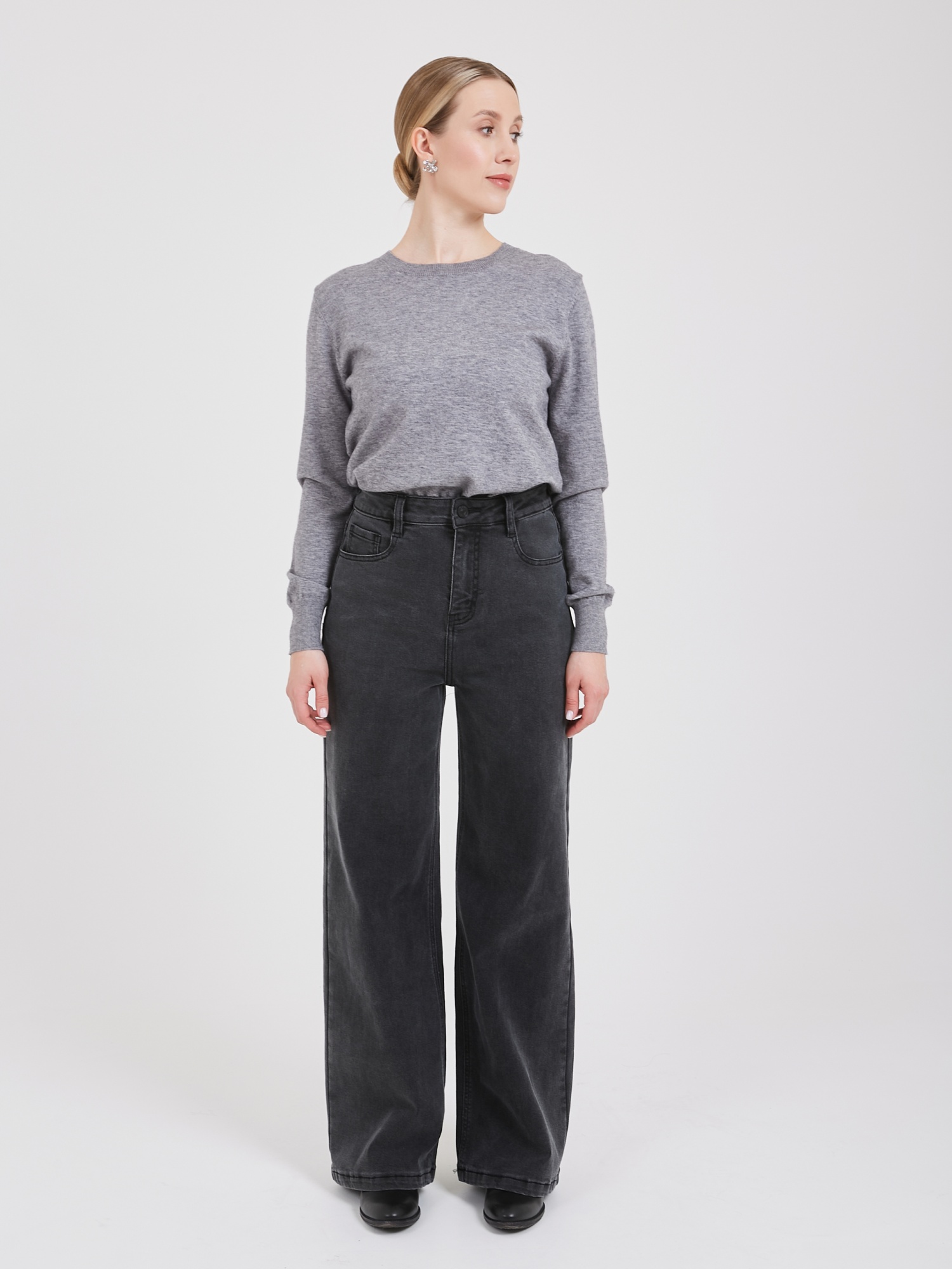Серые джинсы на высокой посадке с прямым кроем, расширяющимся от бедра до низа. Эта базовая модель выполнена из качественного плотного денима, подходящего для осенне-зимнего сезона. Джинсы удобно сидят на любой фигуре, формируя идеальный силуэт и обеспечивая свободную посадку. Стильный и универсальный элемент гардероба, способный подчеркнуть индивидуальность своего владельца. Осень-Зима'25/26. Капсула "Вишневый сад"