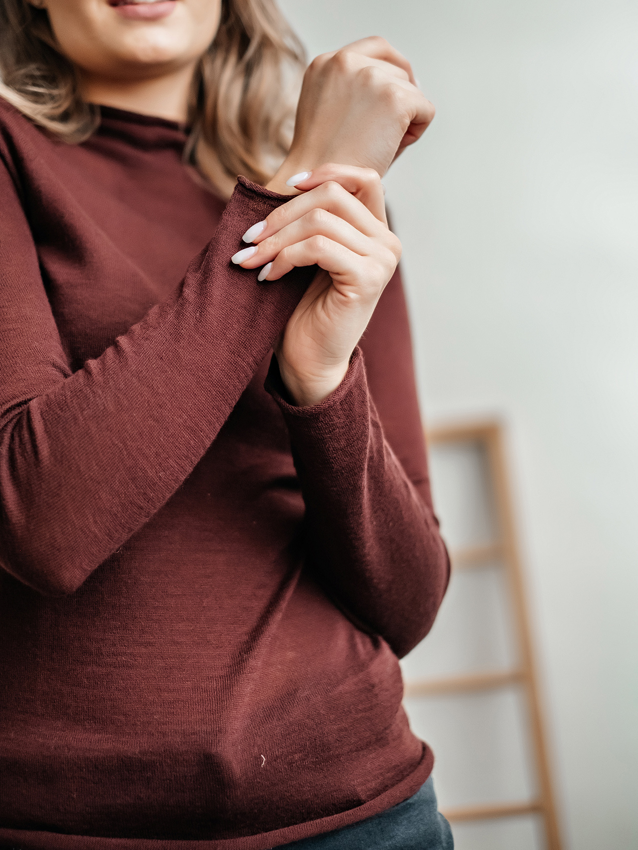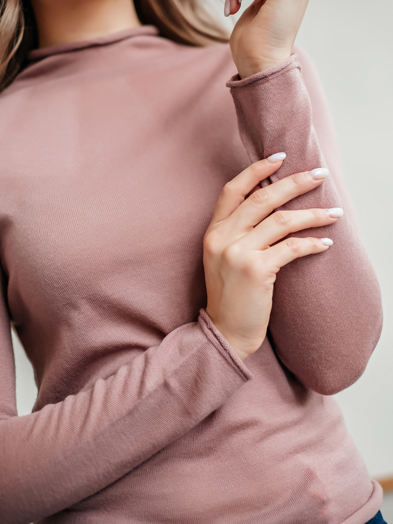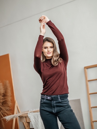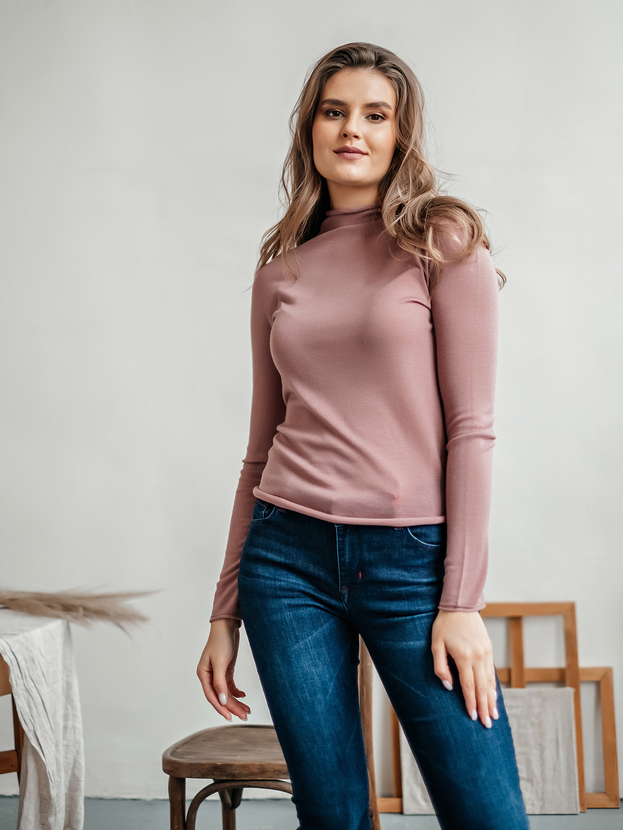 На сайте указаны российские размеры. Бесшовный джемпер очаровывает своей элегантностью. Полуприлегающий крой, воротник-воронка, рукава полной длины. Легчайший шерстяной материал приятен к телу, обеспечивает комфорт и сохранение тепла. Этот базовый джемпер - необходимый элемент для создания модных многослойных комплектов. Его можно носить как с футболкой, так и с платьем, а завершенность образу придаст жилет или жакет. Ткань: выполнен из высококачественной шерсти мериноса (86), нейлона (8%) и люрекса (6%). Крой: однотонный тонкий джемпер приталенного силуэта. Модель по типу водолазки – идеальная база для создания десятка образов. Тонкий, легкий и при этом очень теплый джемпер подчеркивает все достоинства фигуры. Представлен в двух стильных оттенках – пыльно-розовом и винном. Отделка: имеет аккуратный воротник с элегантным загибом, который повторяется и на рукавах.