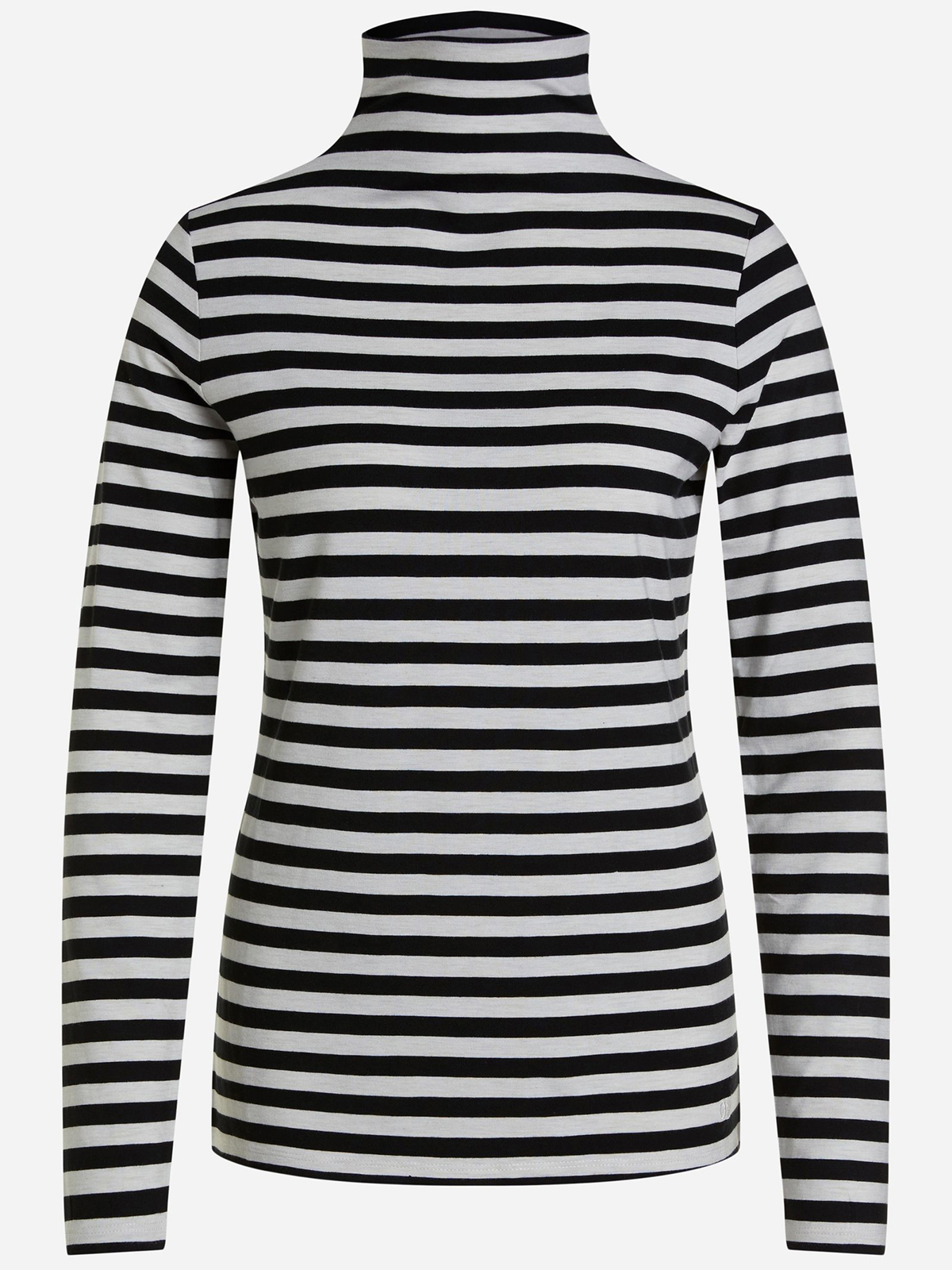 Базовая водолазка во французском стиле. Слегка приталенный силуэт, высокий воротник-гольф, втачные рукава полной длины. Водолазка может выступать как самостоятельный верх или надеваться под жакет, кардиган, блейзер или сарафан. Рост модели 178 см, ее размер – 42 (российский).