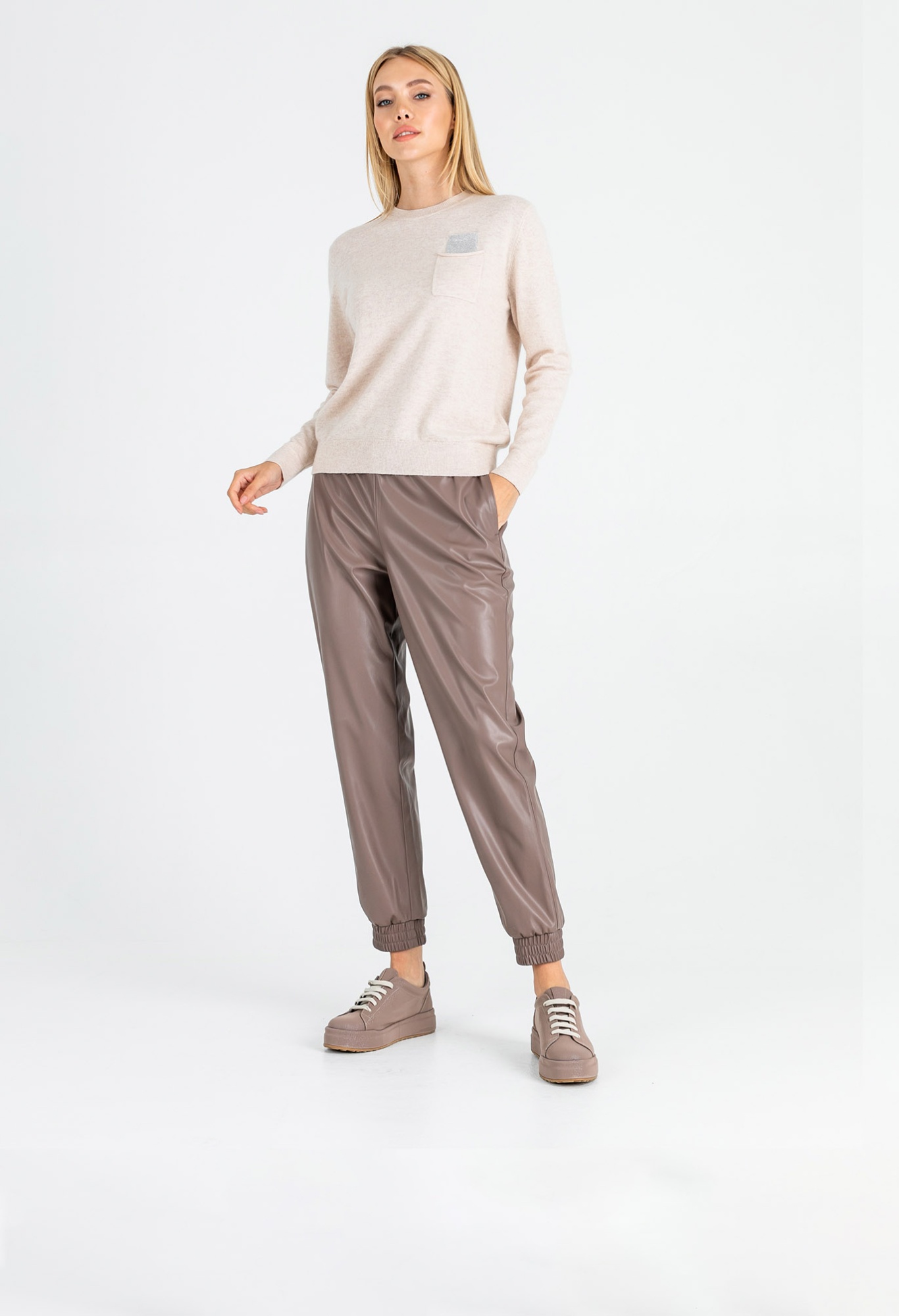 На сайте указаны Российские размеры. Ткань: смесовая ткань средней плотности. В составе: 27% вискоза, 27% нейлон, 23% ангора, 23% шерсть. Крой: джемпер слегка приталенного силуэта с круглым вырезом и длинным рукавом. Комфортный материал, где за мягкость отвечает вискоза, а за тепло – ангора и шерсть. Резинки на манжетах и конце изделия обеспечивают надежное прилегание, не открывают зону живота, что особенно актуально в холодное время года. Представлен в двух стильных оттенках – кремовом и нежно-голубом. Отделка: функциональный карман на груди украшен переливающимися стразами, которые выглядит уместно и добавляют образу праздничности. С коллекцией брюк и юбок для создания образа с джемпером можно познакомиться в соответствующих разделах нашего сайта. Рост модели - 177 см