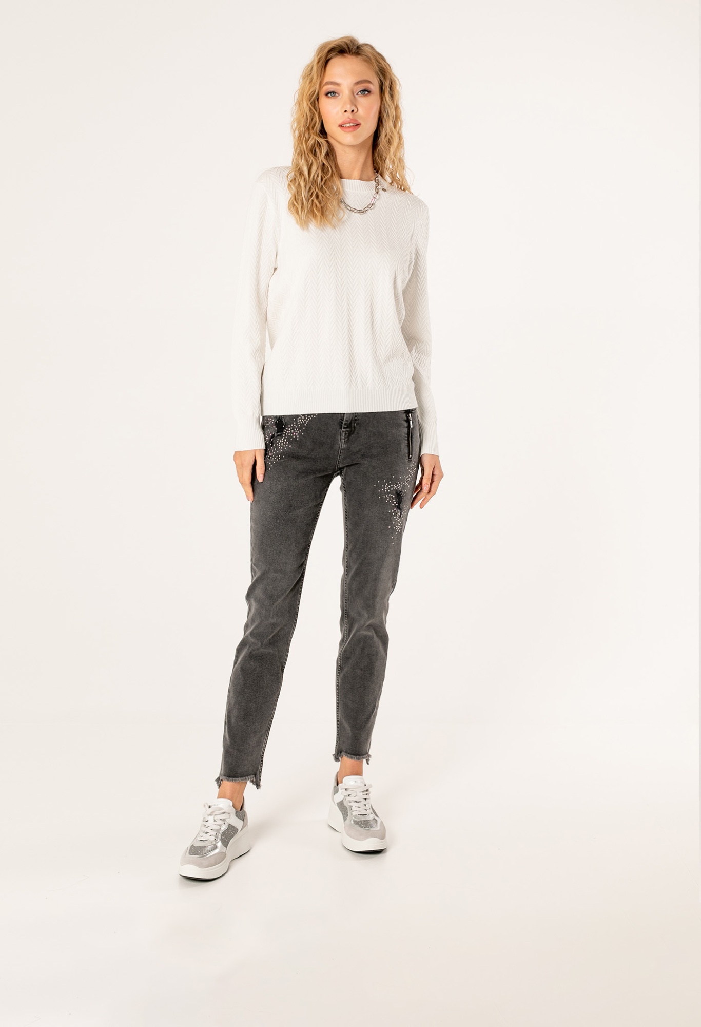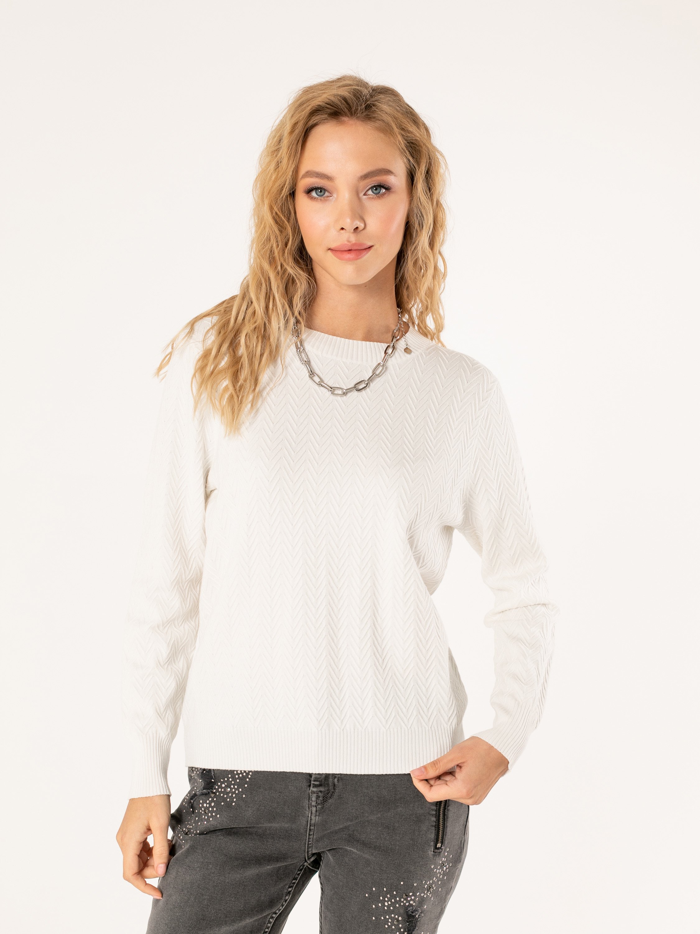 На сайте указаны российские размеры. Ткань: 55% вискоза, 45% хлопок+нейлон Крой: базовый джемпер прямого силуэта средней длины. Модель с удлиненными рукавами и круглым воротом – вечная классика, которую так легко вписать в повседневный гардероб. Джемпер подчеркивает все достоинства, в его составе хлопок и вискоза, которые дарят мягкое тепло и уют. Прямые свободные рукава обеспечивают комфорт и не сковывают движение. Отделка: получайте удовольствие каждый раз, когда проводите рукой по приятному рельефу «елочке», которая добавляет романтичности всему образу. Сочетайте с джинсами, брюками ярких и приглушенных оттенков.