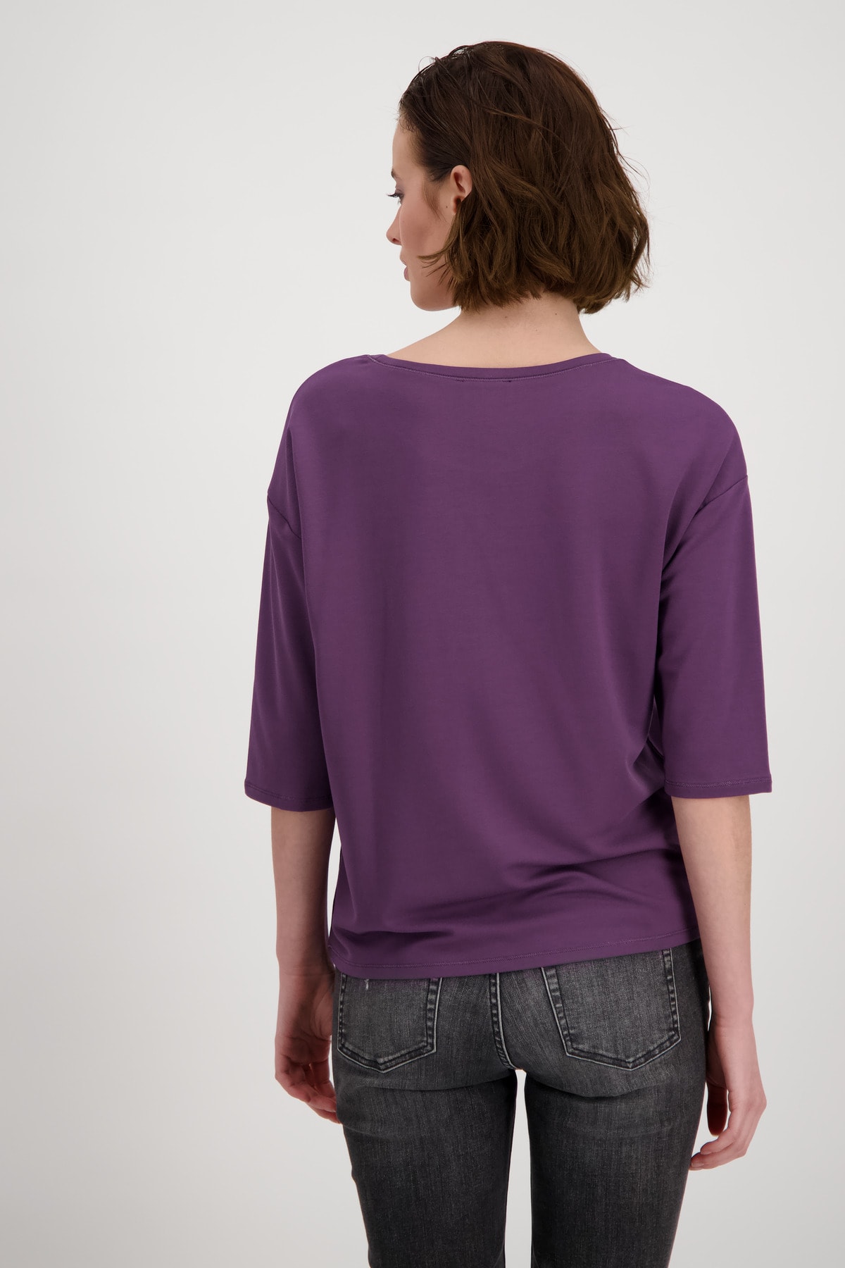 На сайте указаны российские размеры. Эта рубашка с рукавом ¾ от monari станет экстравагантной изюминкой вашего гардероба и обещает приятный и уютный комфорт благодаря обработке из струящейся вискозы, мягкого модала и небольшого количества эластана. Лакированная машина с окантовкой из сверкающих страз и надписями подчеркивает гламурный вид модели. Круглый вырез, концы рукавов и прямой низ с блестящим люрексом идеально дополняют образ. Будьте уверены в этой рубашке на каждой вечеринке или в повседневной жизни! Модель ростом 179 см. Длина спины 44 размера составляет 62 см.