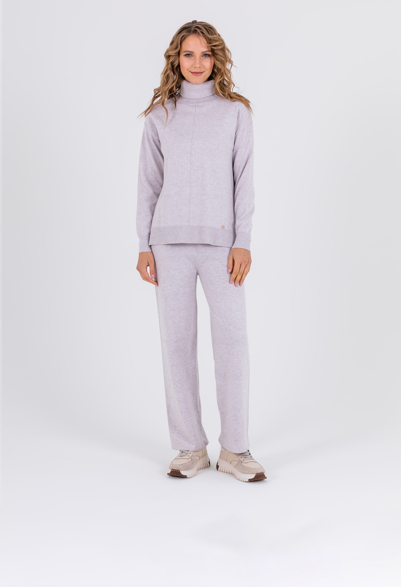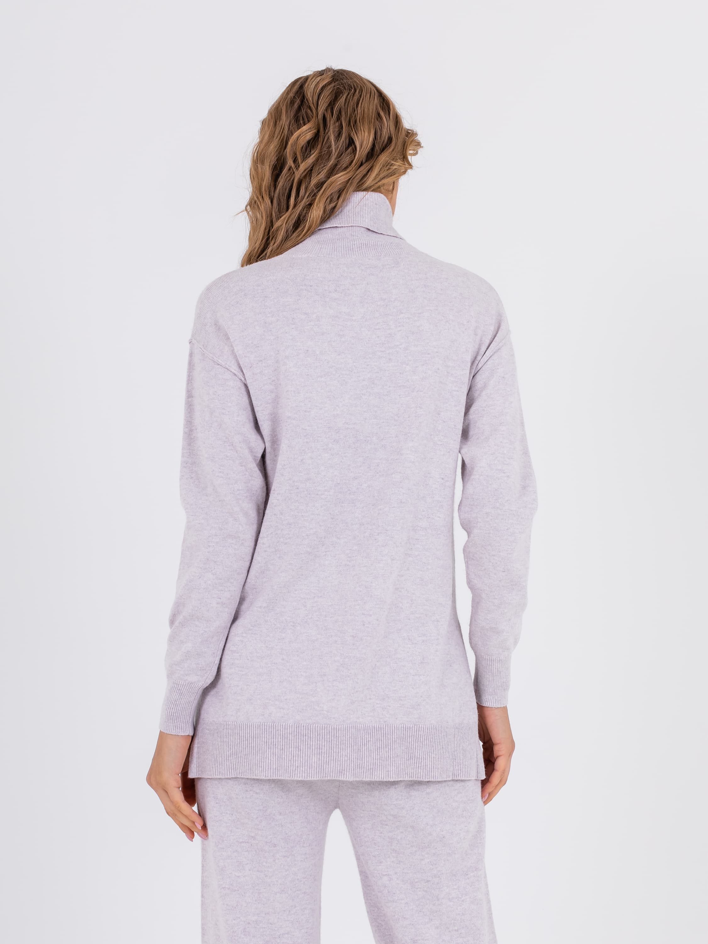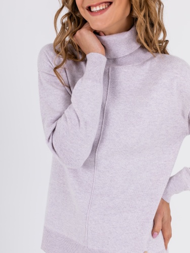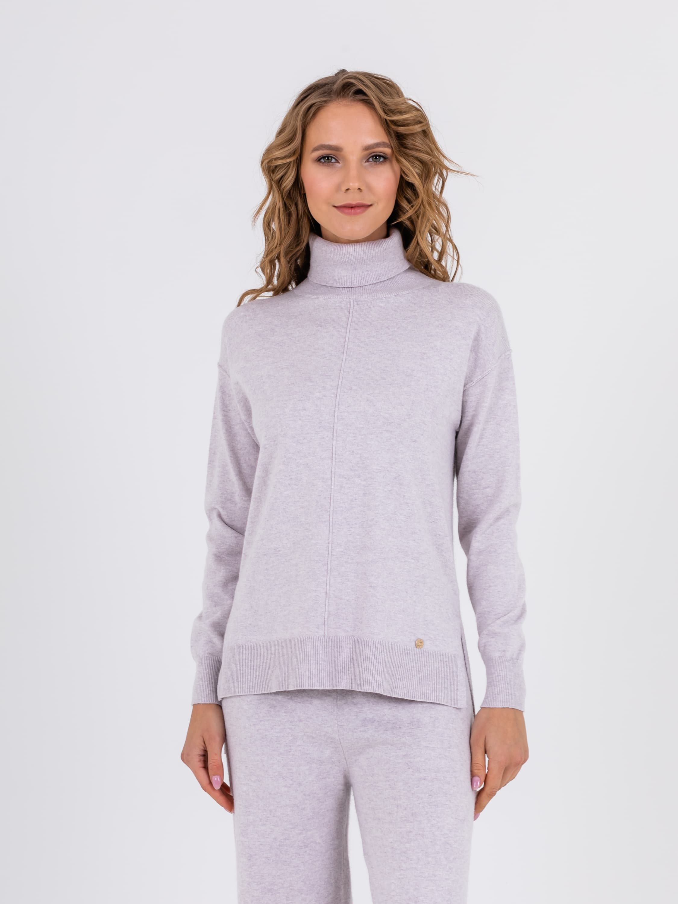 На сайте указаны российские размеры. Ткань: 58% вискоза, 25% полиэстер, 13% нейлон, 4% ангора. Крой: джемпер слегка приталенного силуэта с высоким воротом и длинным рукавом. Комфортный материал, где за мягкость отвечает вискоза, а за тепло – ангора и шерсть. Широкие резинки на манжетах и конце изделия обеспечивают надежное прилегание, без поддувания снизу. Отделка: увеличенная по сравнению с передней частью задняя половина джемпера прикрывает часть бедер и скрывает возможные несовершенства фигуры. Переднюю часть украшает рельефная полоса, создающая дополнительную вертикаль. С коллекцией брюк и юбок для создания образа с джемпером можно познакомиться в соответствующих разделах нашего сайта. Рост модели 175 см.