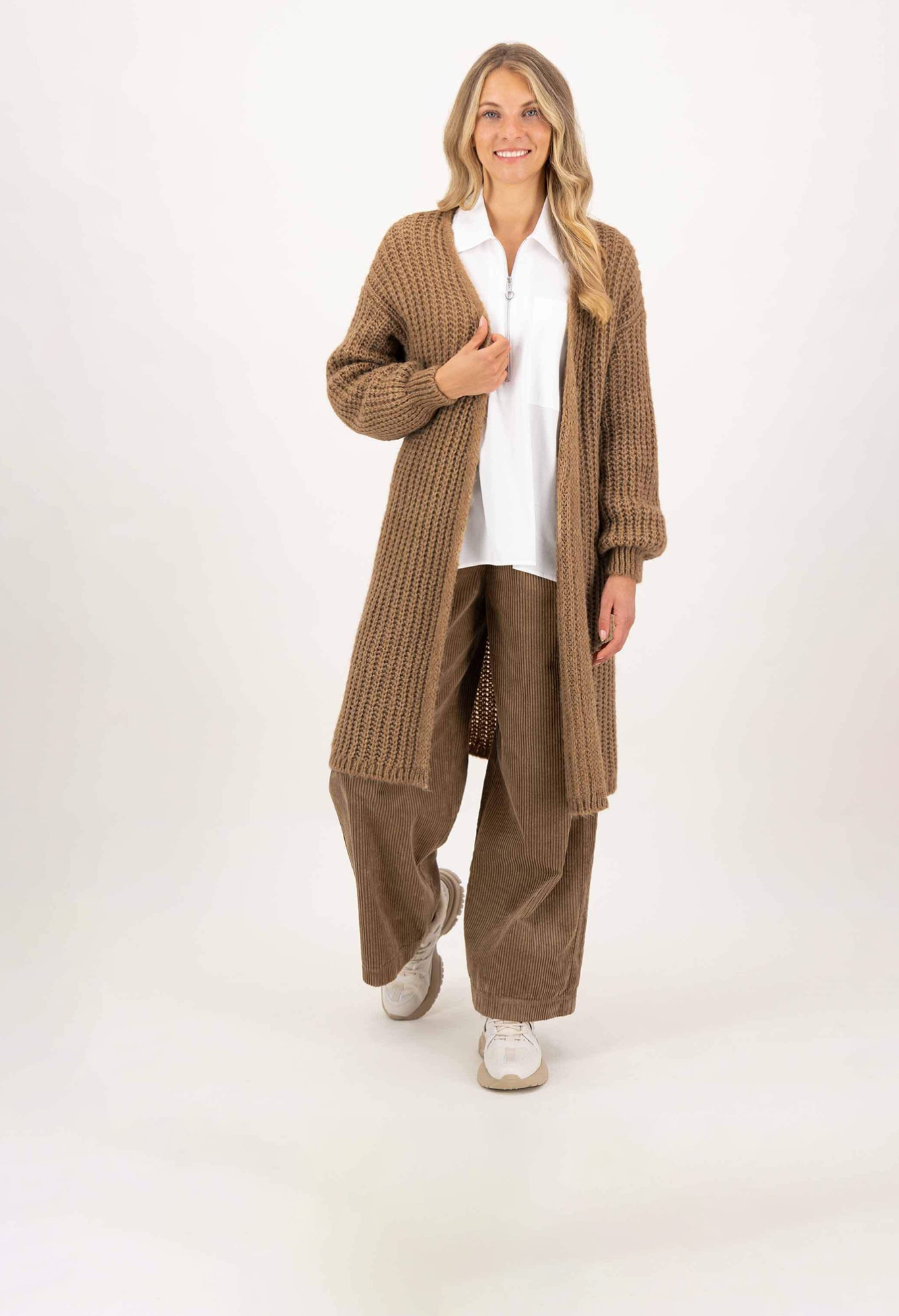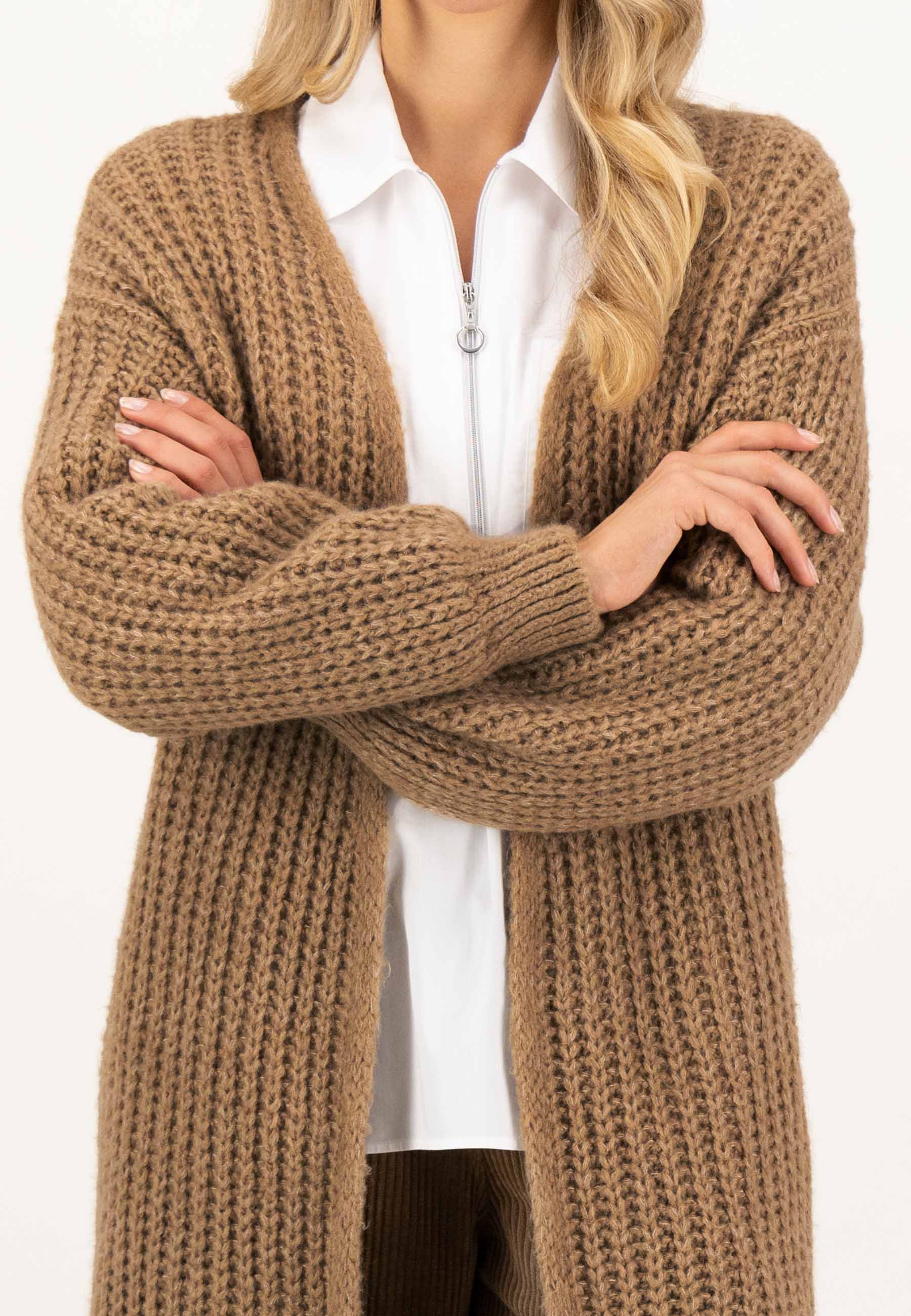 На сайте указаны российские размеры. Длинный объёмный кардиган с пышными рукавами. В сочетании с красивой блузкой , крутым свитером или повседневной толстовкой — эта модная вещь украсит любой образ и согреет и согреет вас. Грубая трикотажная структура особенно подчеркивается объемными рукавами. Благодаря более длинному повседневному крою куртка также идеально сочетается с платьем до колен. Рост модели: 177 см. Измерения для 44 размера: Окружность груди: 54 см Ширина подола: 60 см Длина по спинке: 91 см. Длина рукава: 68 см.