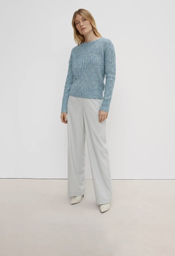 На сайте указаны российские размеры. Вязаный джемпер с круглым вырезом. Манжеты в рубчик, заниженная линия плеча. Детали: ребристые края, ребристая отделка. Длина спинки в 44 размере - 54 см.
