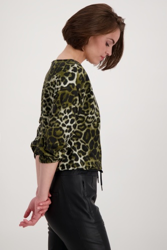 На сайте указаны российские размеры. Leo-Love: толстовка monari основана на модном анималистическом принте. Приятное качество эластичного хлопка создает великолепный женственный силуэт благодаря красивому вырезу-лодочке. Широкий рукав ¾ с резинками на концах рукавов и резинкой по низу придает изделию спортивный и стильный вид. Закрепите эту привлекающую внимание вещь и носите ее, например, с классными кожаными брюками. Модель ростом 179 см. Длина спины 44 размера составляет 60 см.