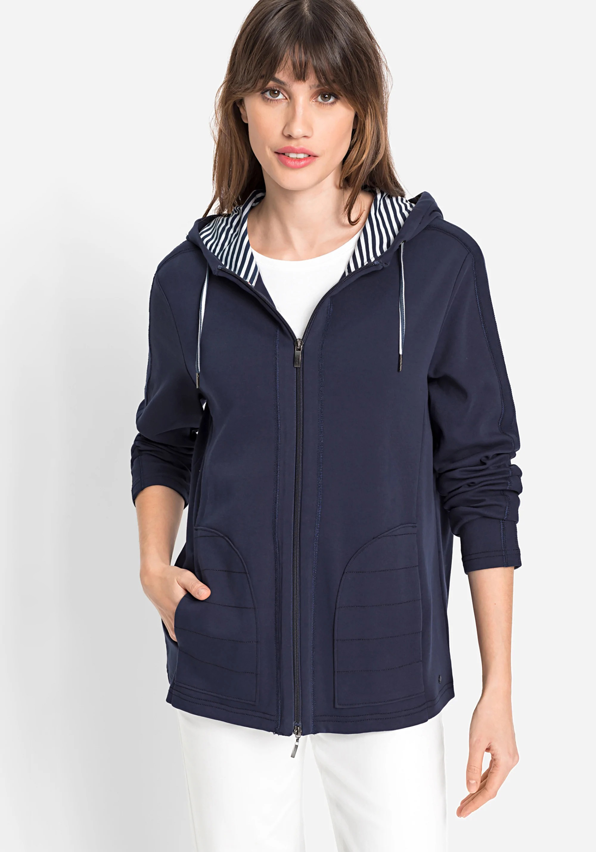 На сайте указаны российские размеры. Куртка в стиле Athleisure. Два передних кармана, двусторонняя молния, капюшон на кулиске и контрастная полоска по центру спины — отлично подходит для повседневного ношения.