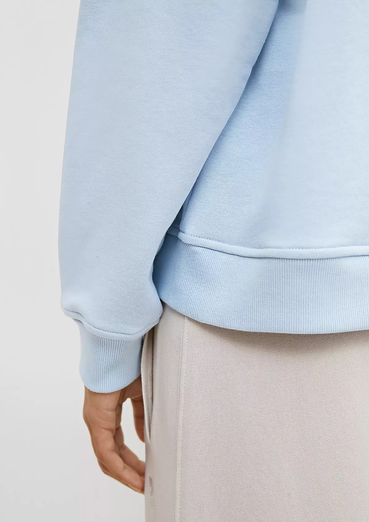 На сайте указаны российские размеры. Толстовка с капюшоном и рельефным принтом. Длинные рукава с ребристыми манжетами. Подол с ребристой отделкой. Длина спины 59 см в размере 42. Рост модели 177 см.