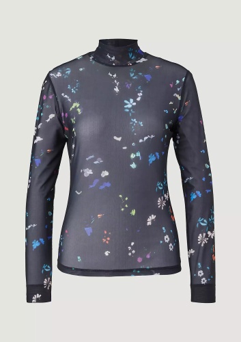 На сайте указаны российские размеры. Сетчатый топ со сплошным принтом. Длина спины 58 см в размере 42. Рост модели 177 см.