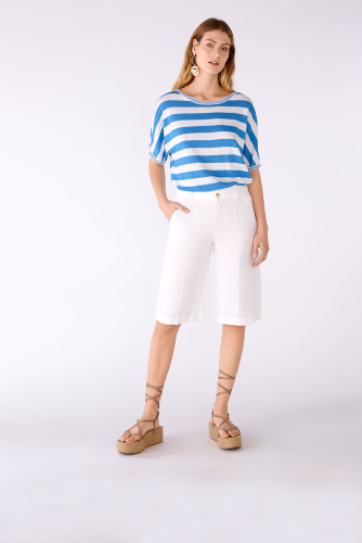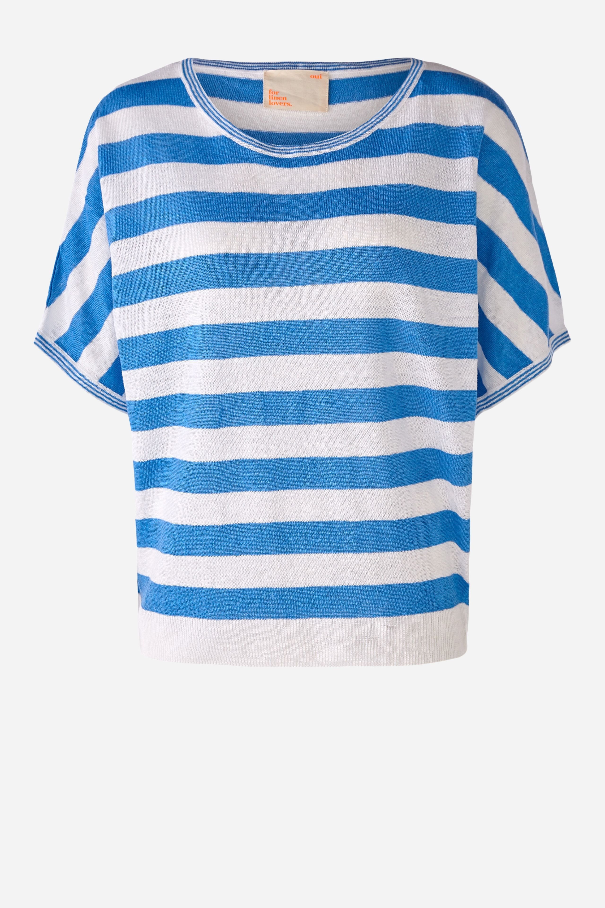 Джемпер в широкую полоску из 100% натурального льна. Свободный крой, стандартная длина. Мини-нашивки на воротнике и манжетах. Спущенные плечи, женственный круглый вырез. Ребристый подол. Длина в размере 42: 60 см.