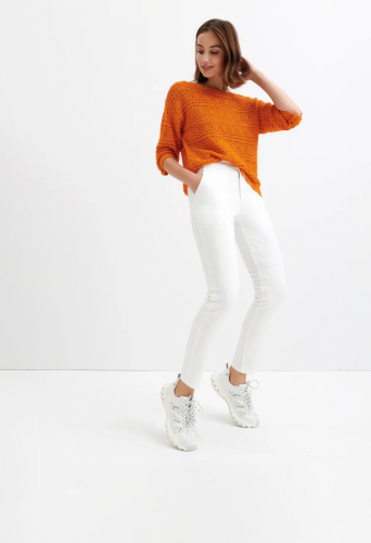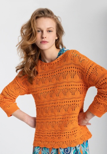 Женственный пуловер в свежем летнем цвете. Прямая, свободная форма. Спущенные плечи. Длинные рукава 3/4 с ребристыми манжетами. Длина в размере 42 - 60см