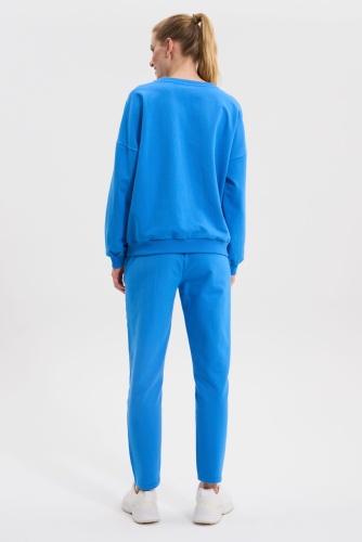На сайте указаны российские размеры. Свободный джемпер с маленьким квадратным принтом "Золотой берег". Длинный рукав с манжетами.