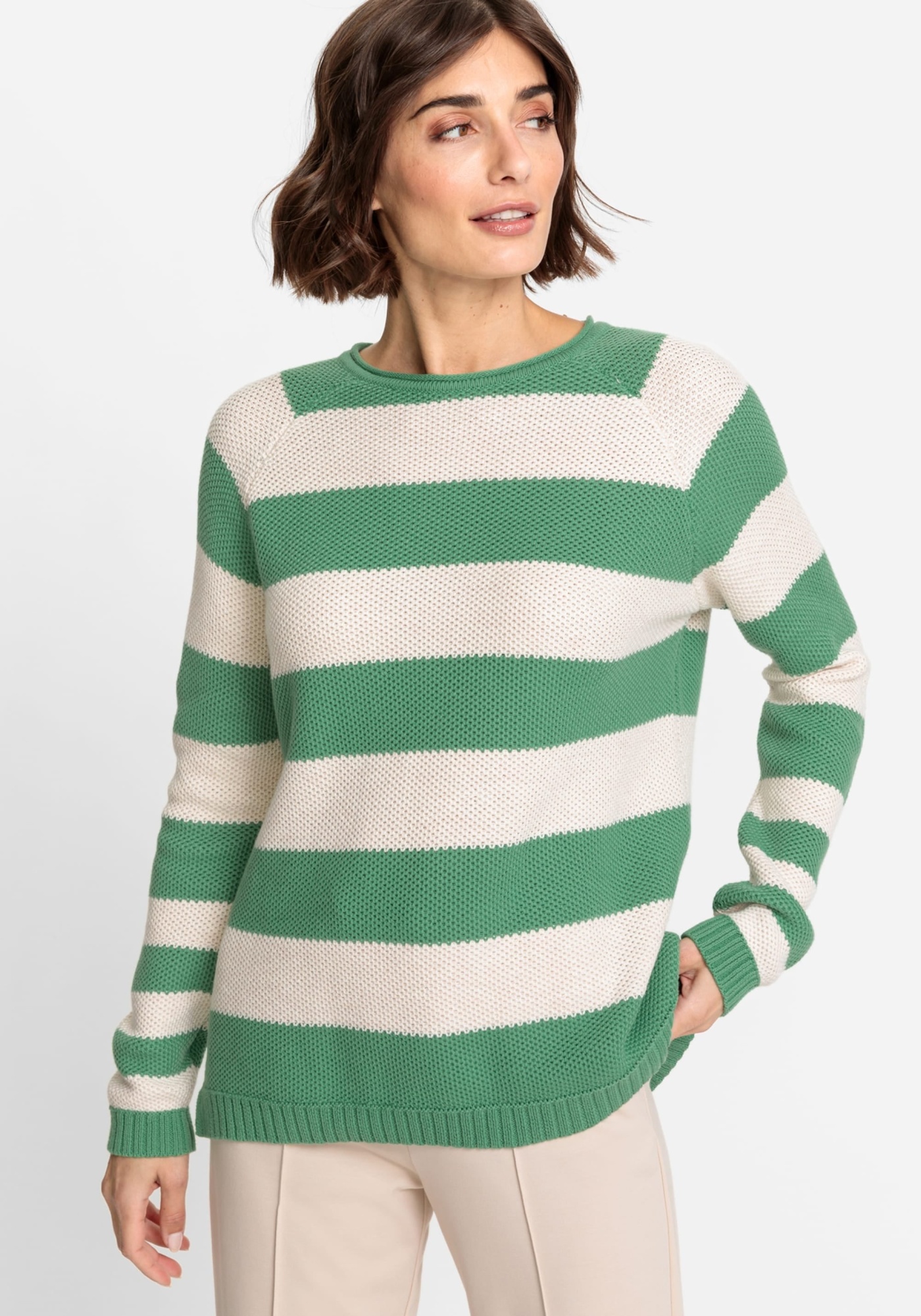 Широкие горизонтальные полосы придают этому свитеру классической формы эффектный вид. Новаторская строчка по всей поверхности для придания текстуры и отделка резинкой по краю и рукавам. Смесь хлопка обеспечивает воздухопроницаемость и комфорт для кожи. В нашей современной модели Cora крой свободный и непринужденный.