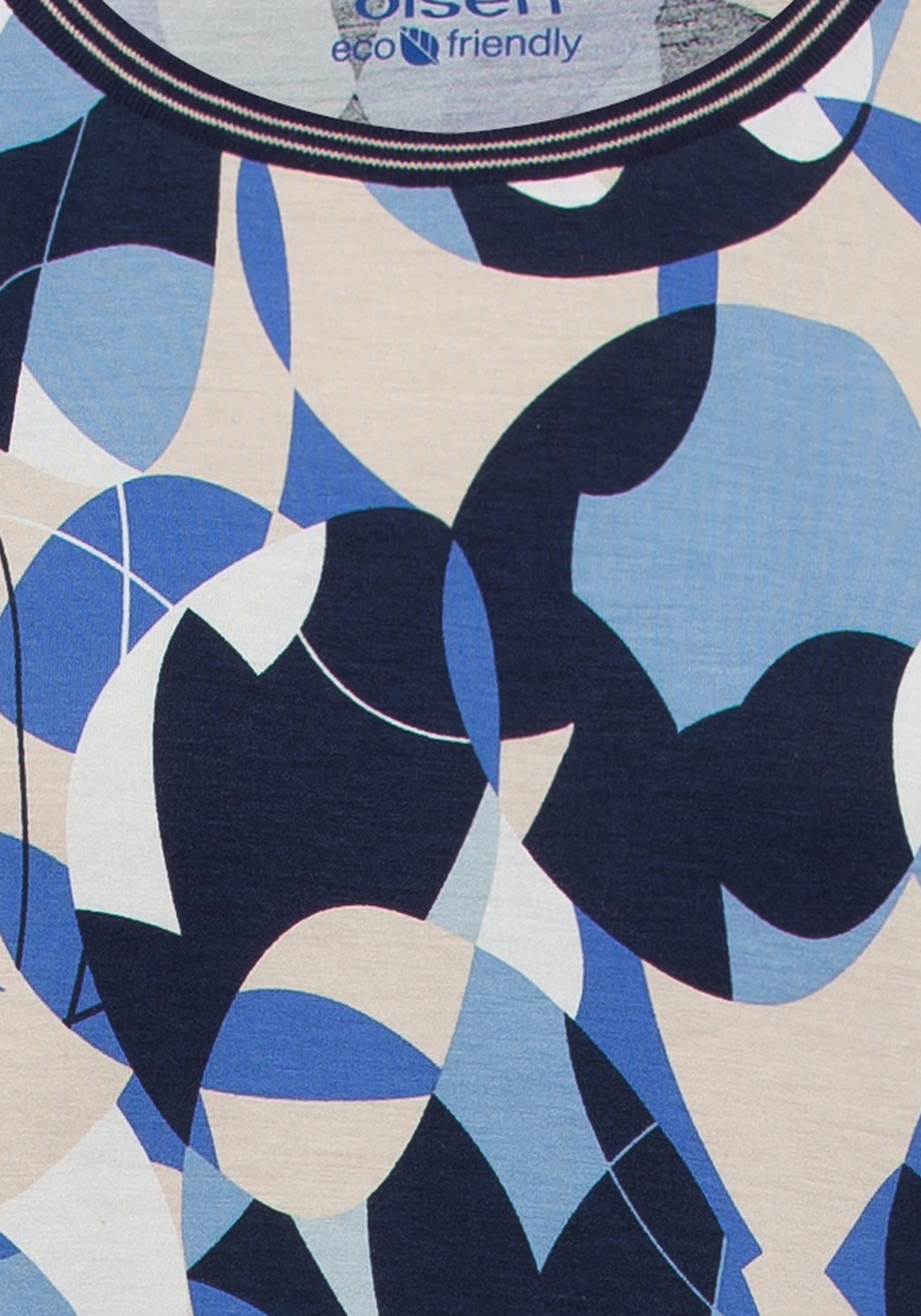 Этот эффектный джемпер украшает геометрический узор в ярких тонах, напоминающий о 70-х годах. Трикотажная отделка в тонкую полоску завершает вырез, манжеты и подол. Свободный и непринужденный крой Clara имеет окантовку по краю для дополнительного комфорта. Ткань имеет мягкую и приятную драпировку благодаря экологически чистым волокнам.
