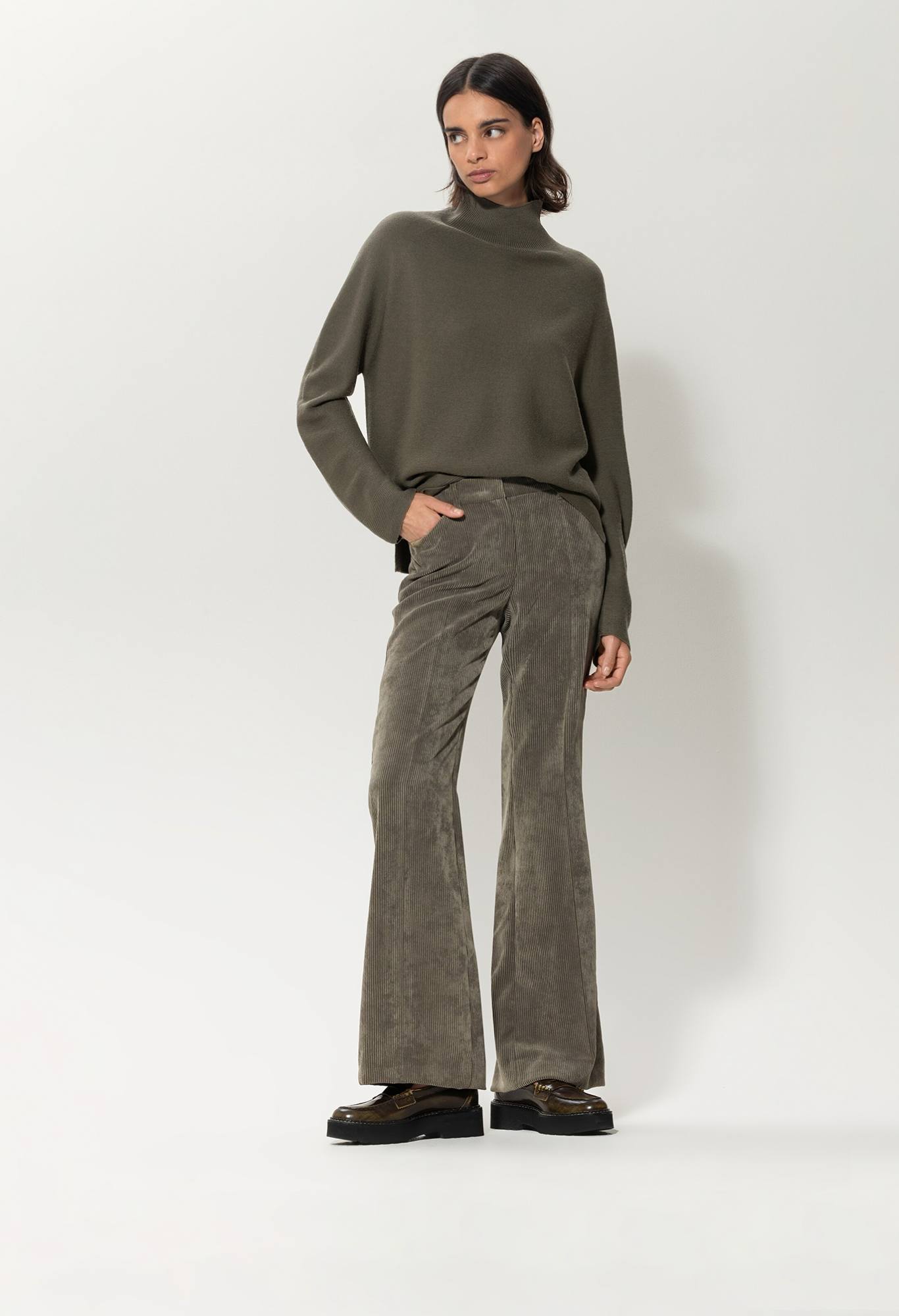Повседневный пуловер из легкой смесовой шерсти тонкой вязки. Ложный воротник-стойка, рукава реглан и разрезы по бокам завершают этот современный дизайн.