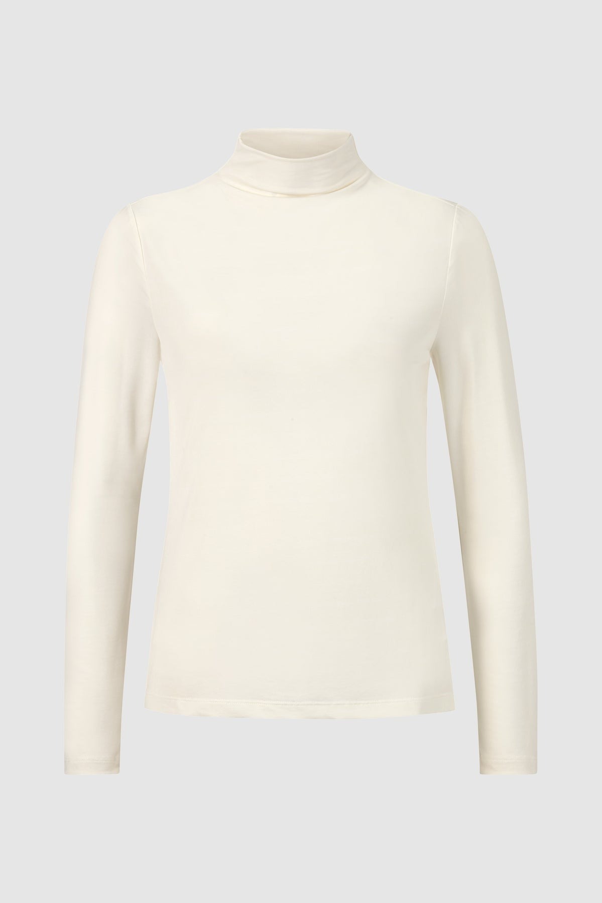 Водолазка изготовлена из нежного и мягкого материала. Модель имеет облегающий силуэт. Вырез на воротнике-водолазке придает ему особый шарм.