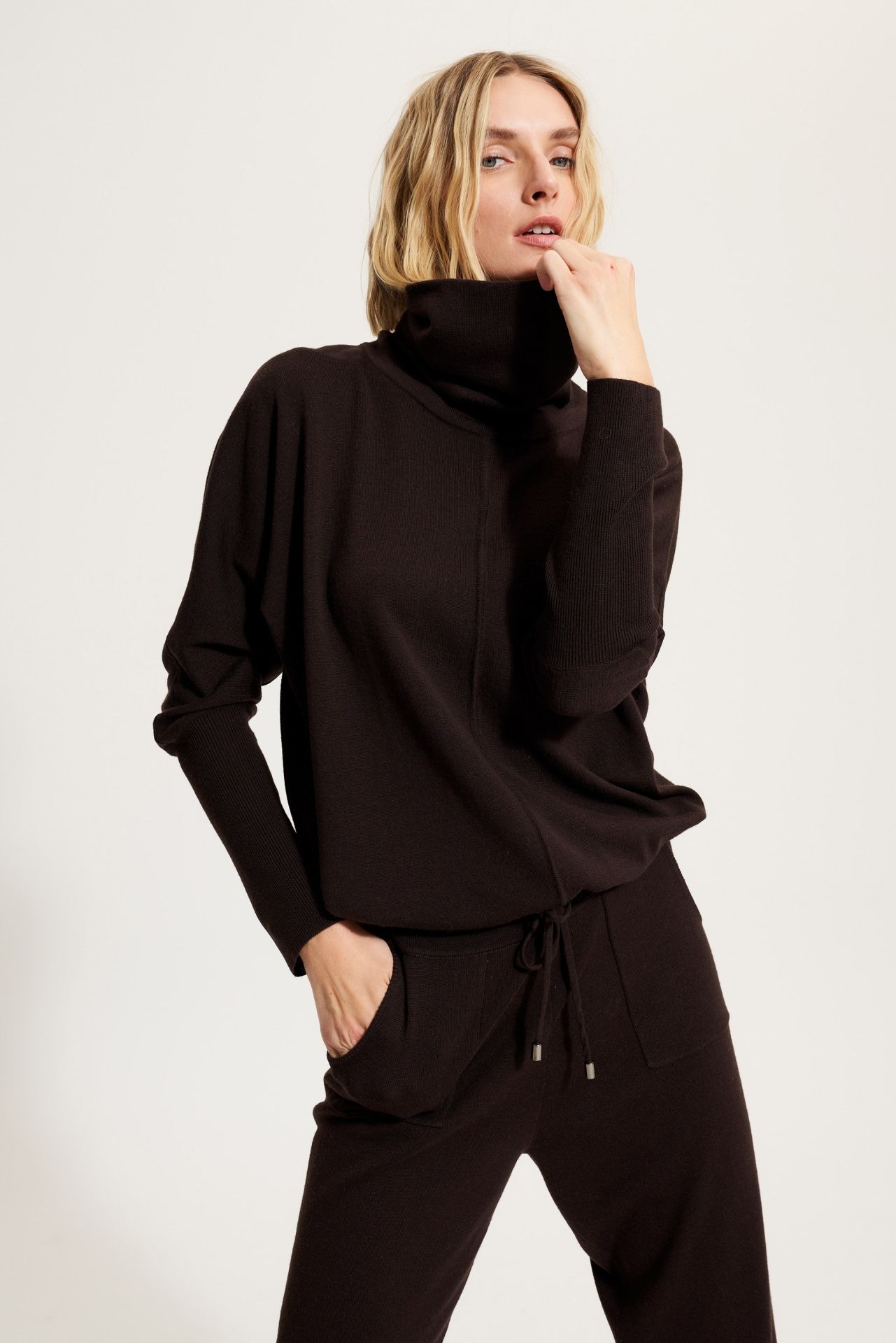 Джемпер свободного кроя с двойным воротником. Длина: 62 см.